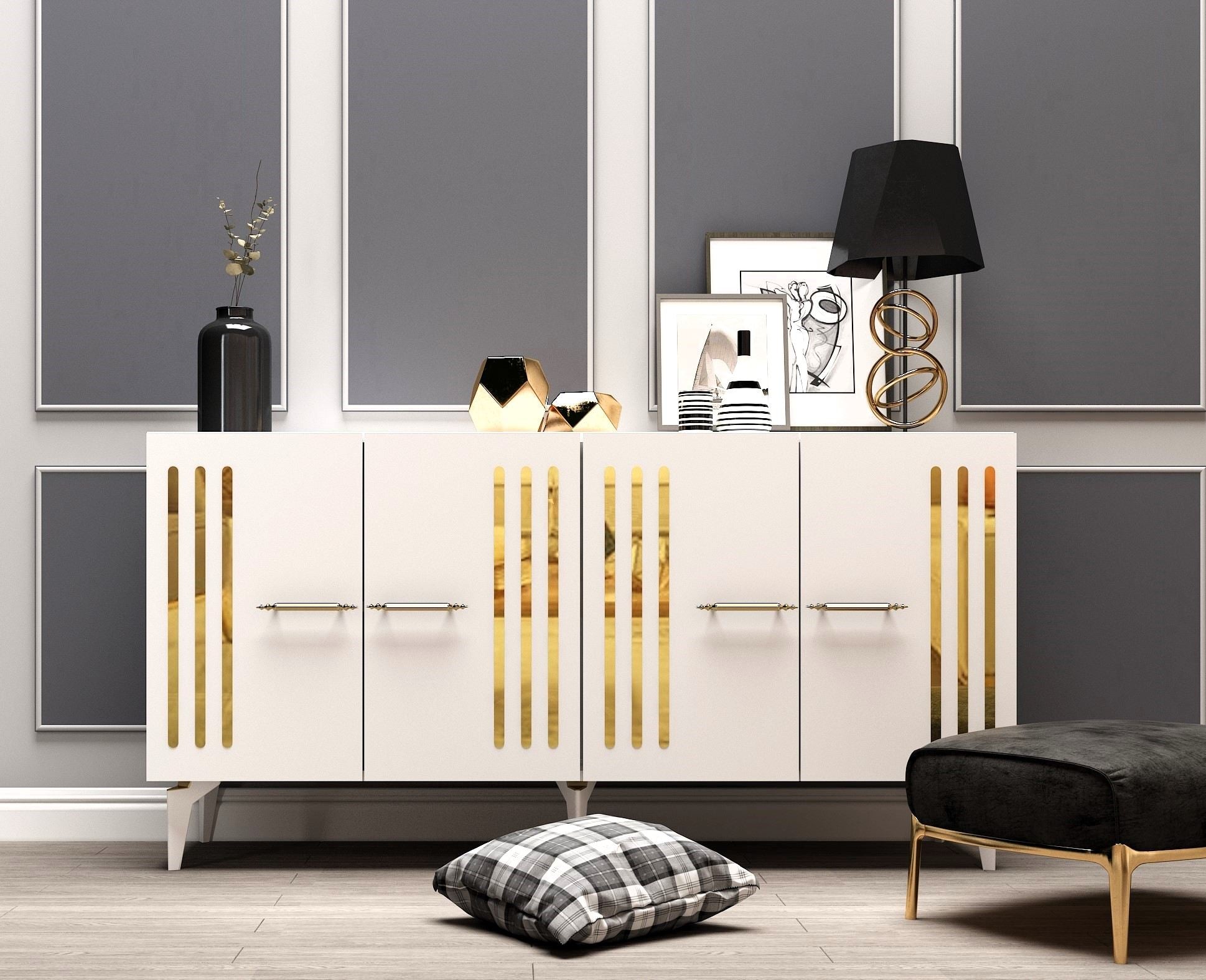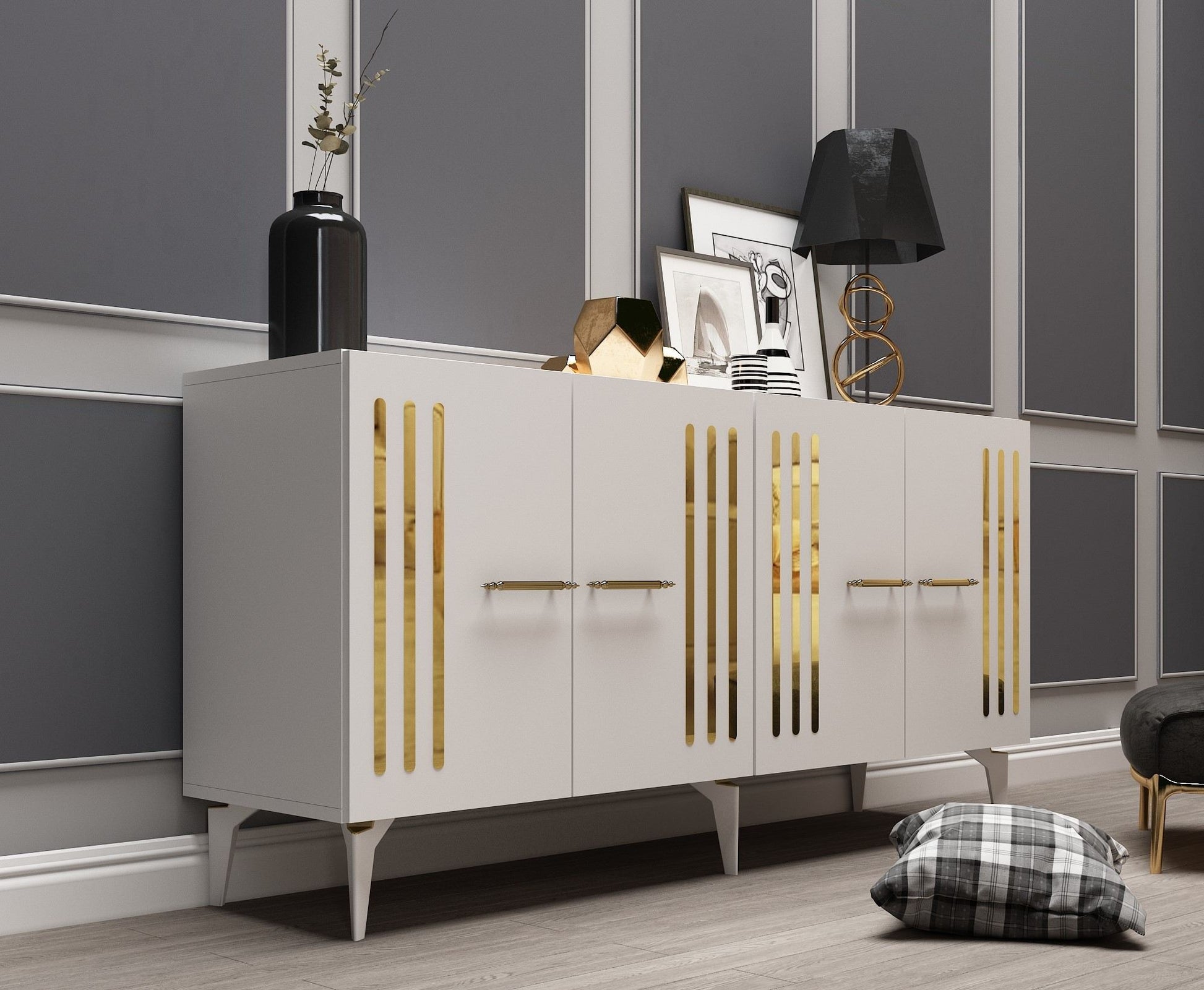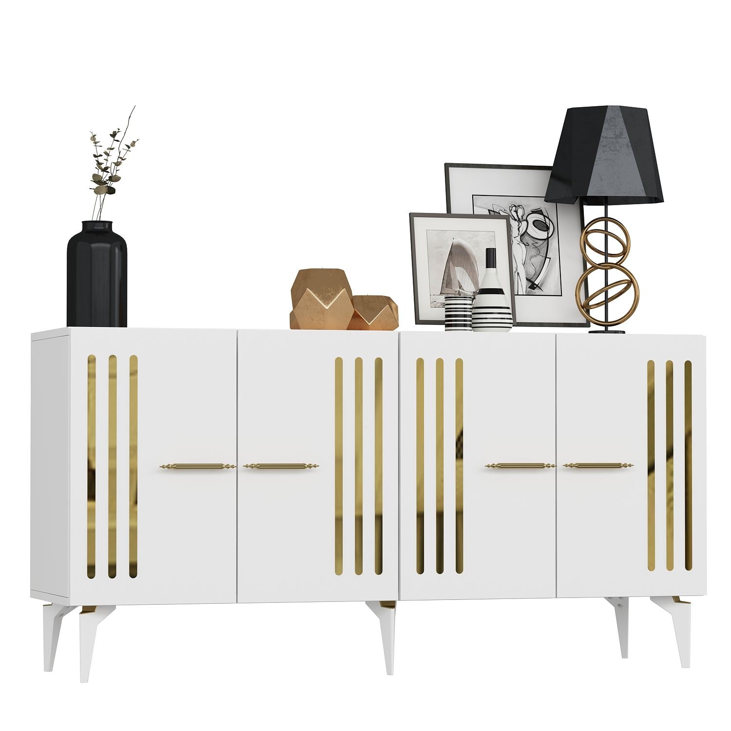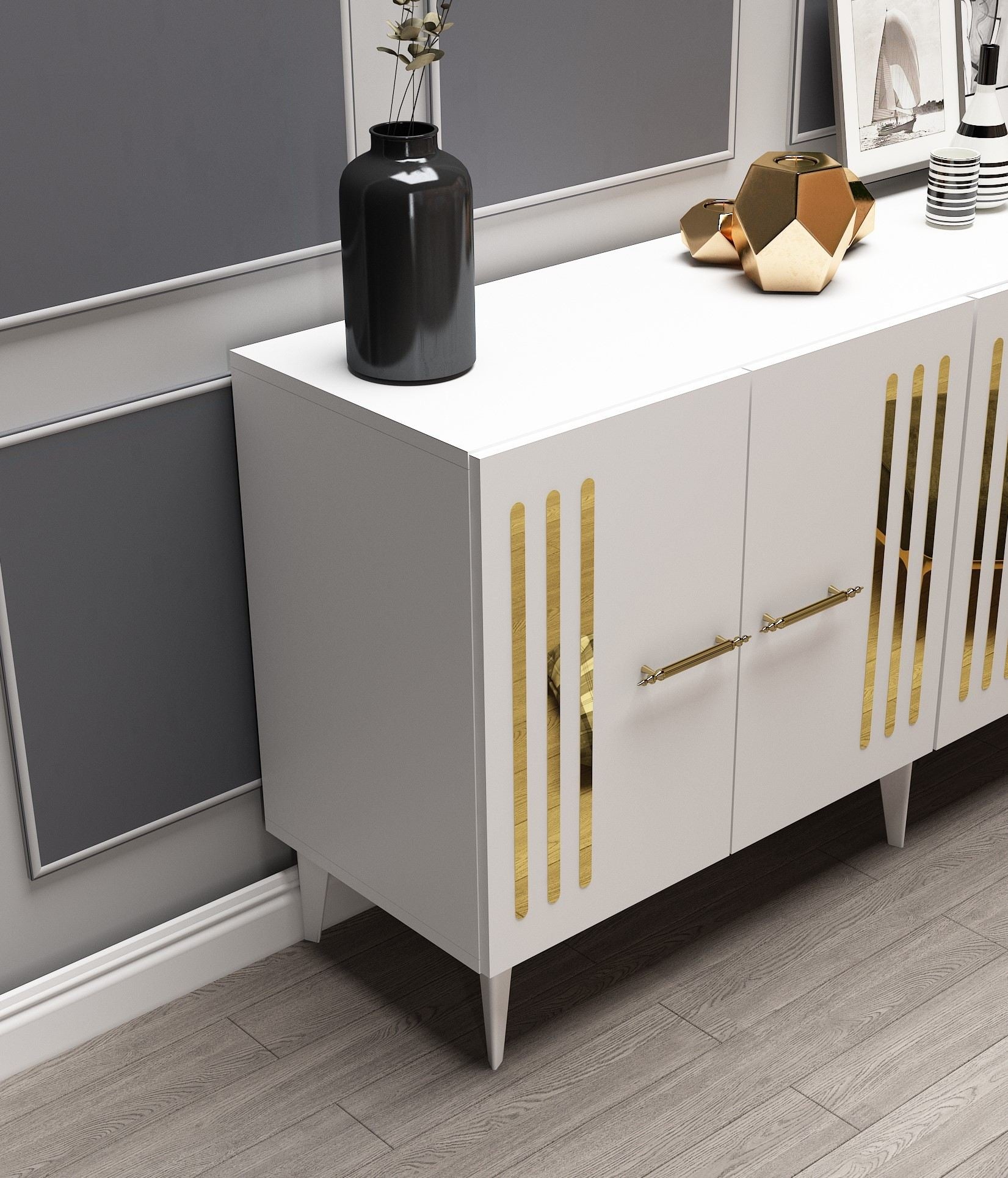 Aparador – 150cm x 79cm x 40cm – Branco e Dourado – Painel de partículas
