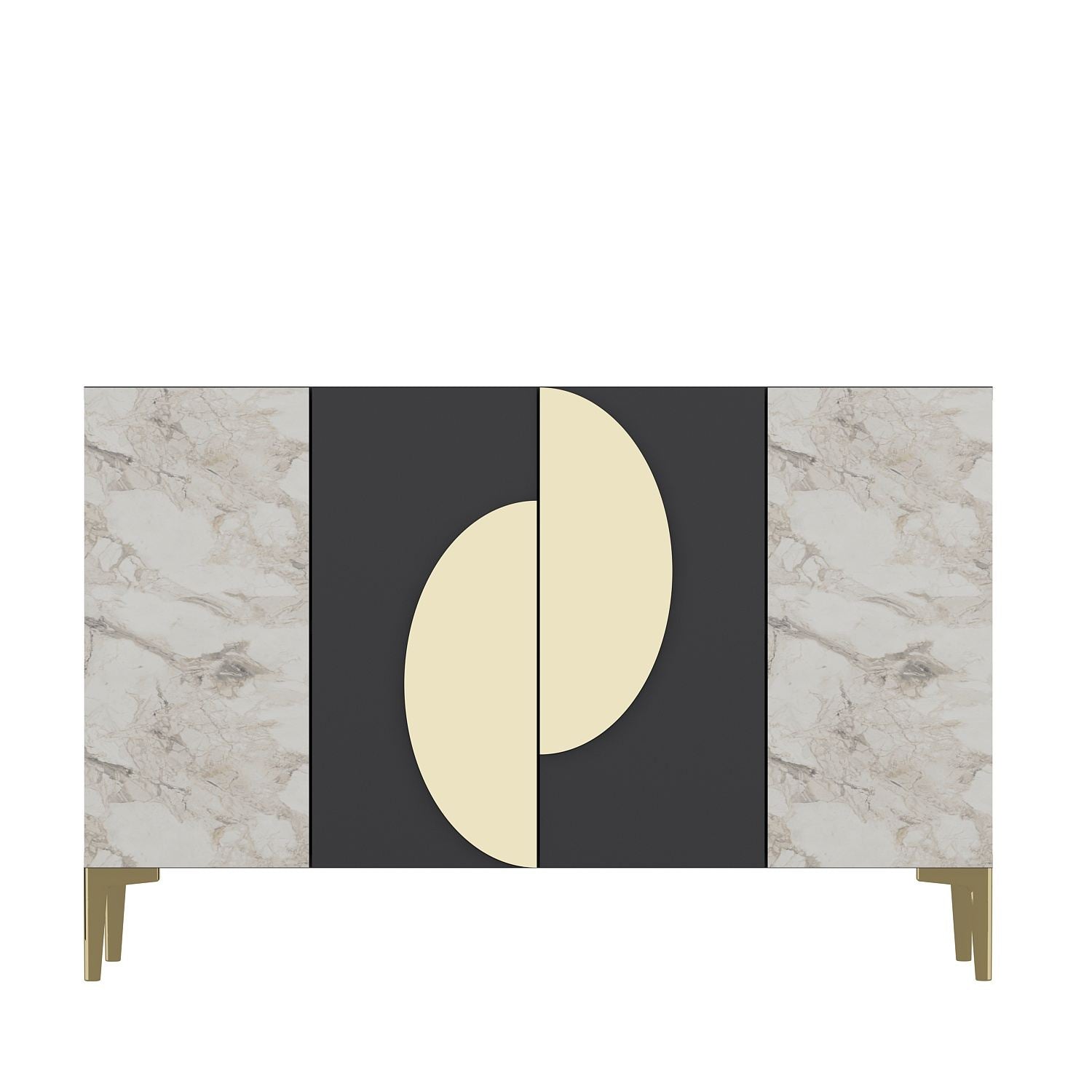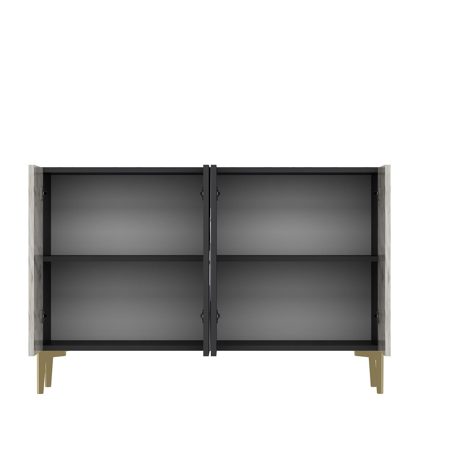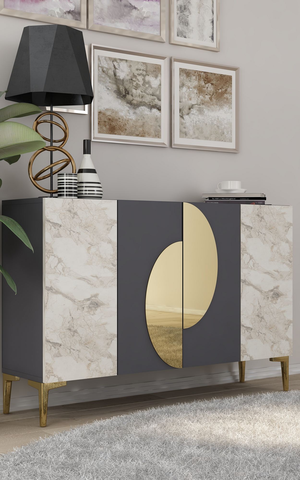 Aparador – 120 cm – Antracite, Mármore de Éfeso e Ouro – Aglomerado revestido de melamina