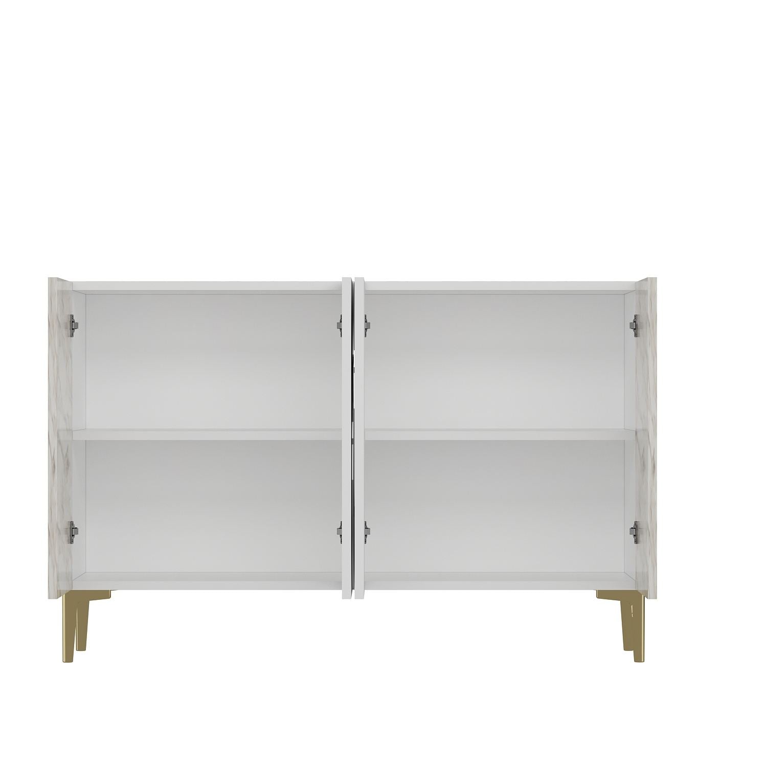 Aparador – 120cm x 75cm x 29.6cm – Branco, Mármore de Éfeso, Dourado – Aglomerado