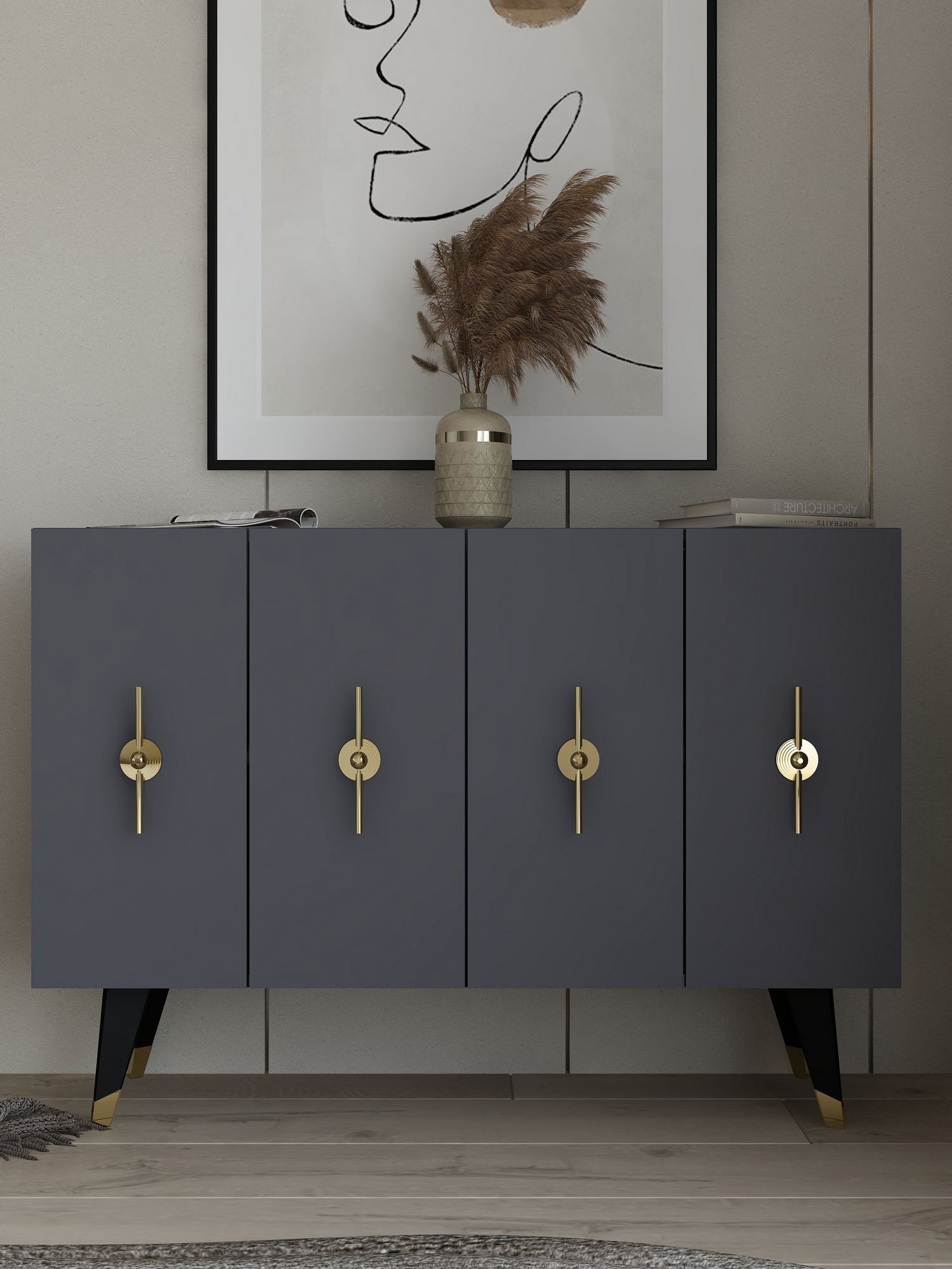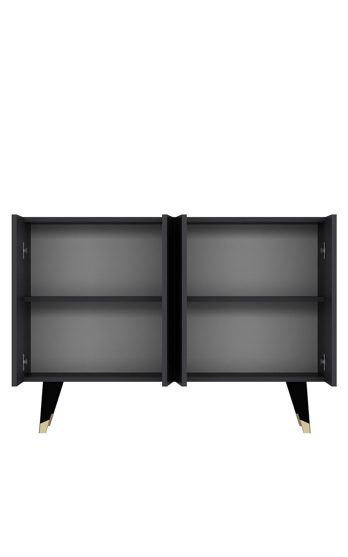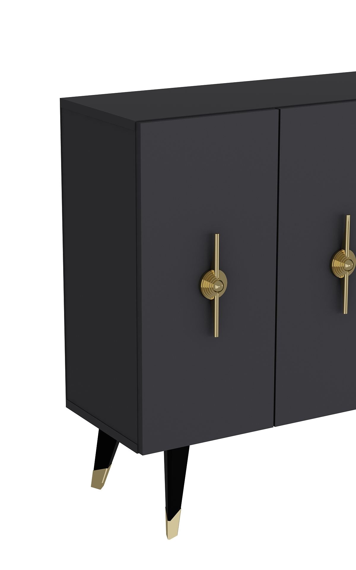 Aparador – 120 cm x 80 cm x 29,6 cm – Dourado e Antracite – Painel de partículas revestido de melamina