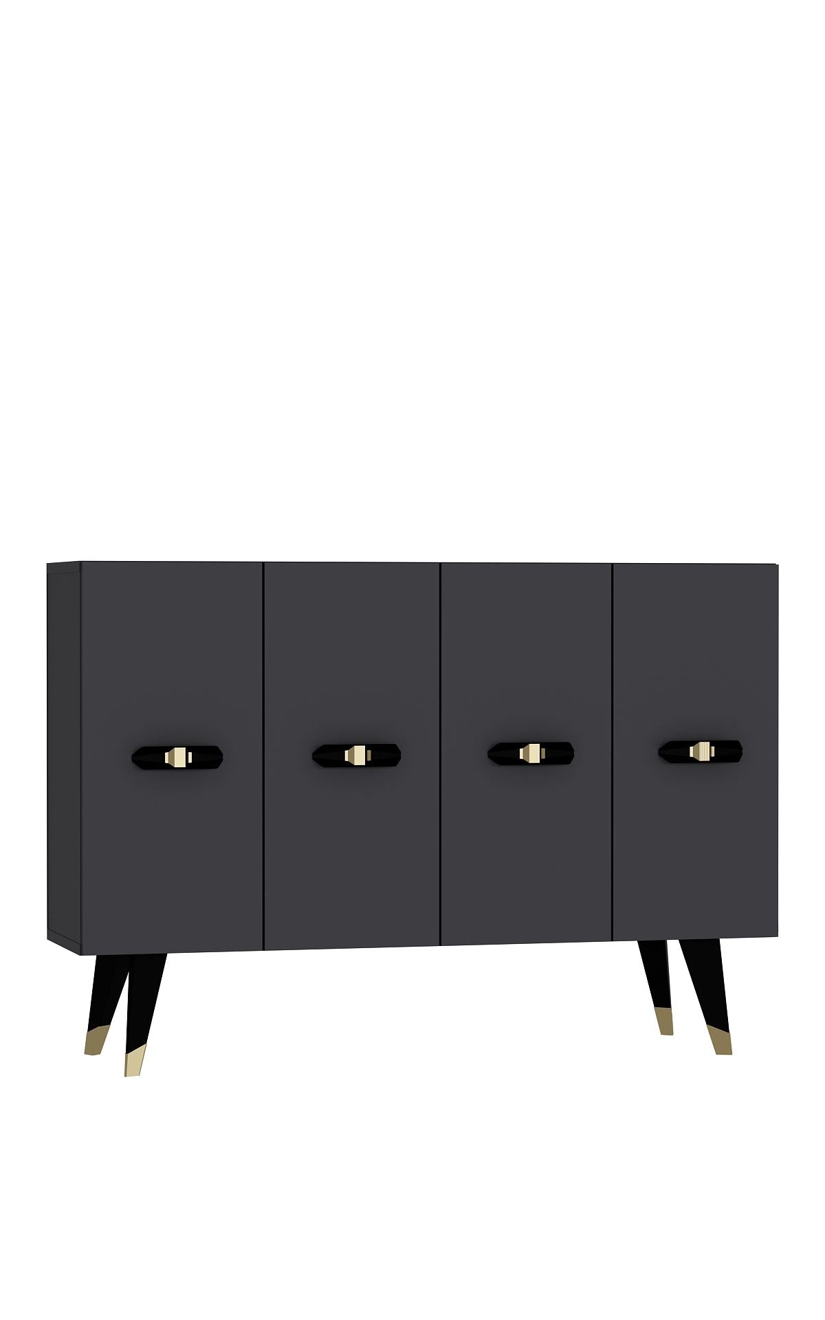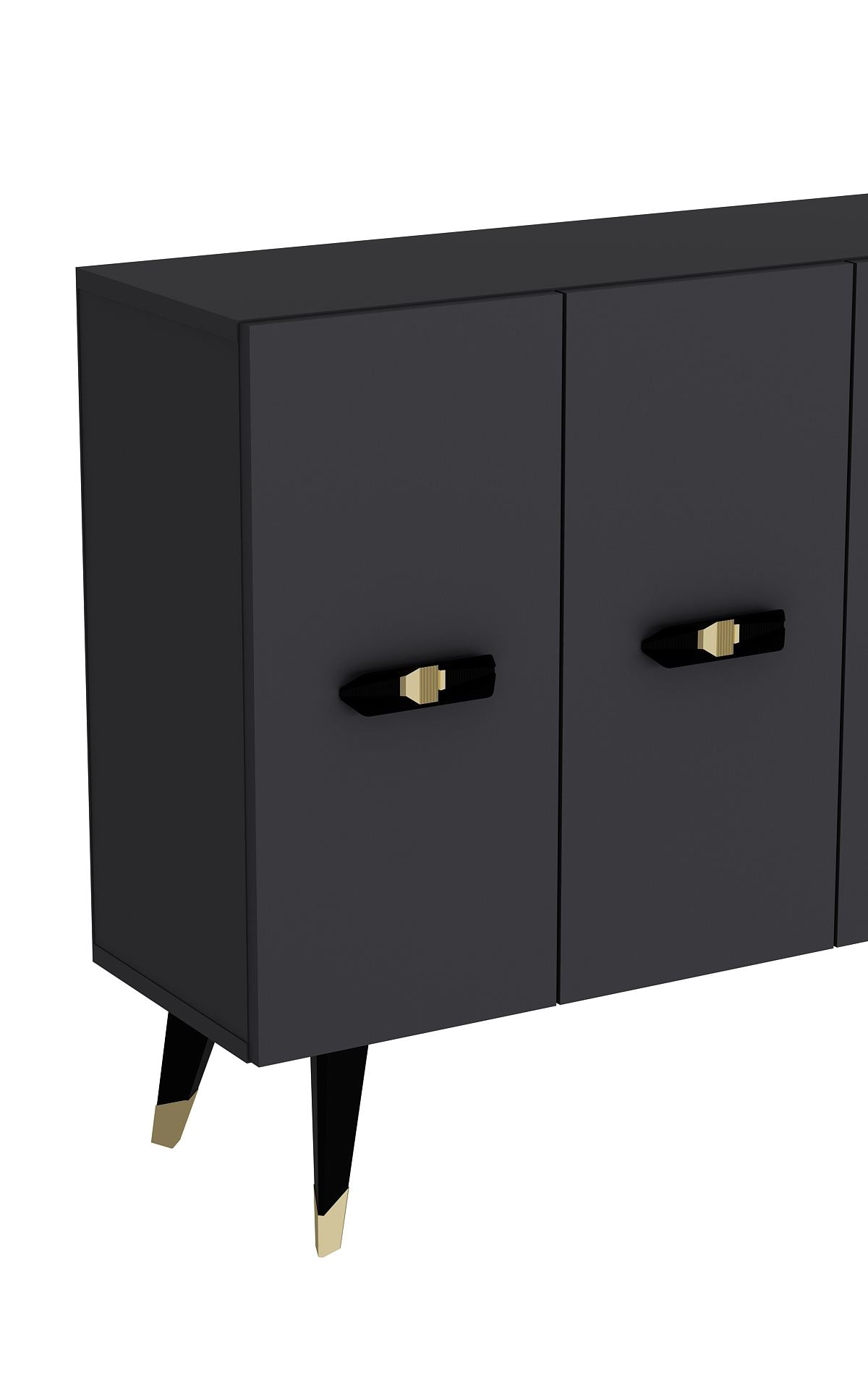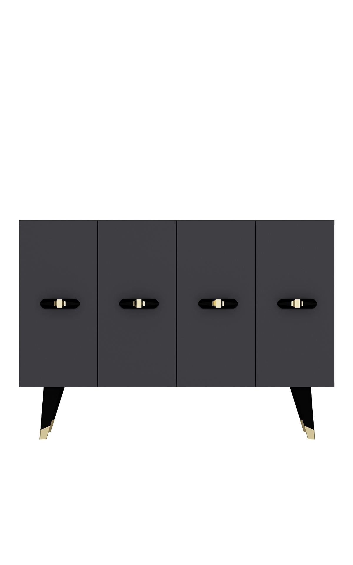 Aparador – 120 cm x 80 cm x 29,6 cm – Dourado e Antracite – Painel de partículas revestido de melamina