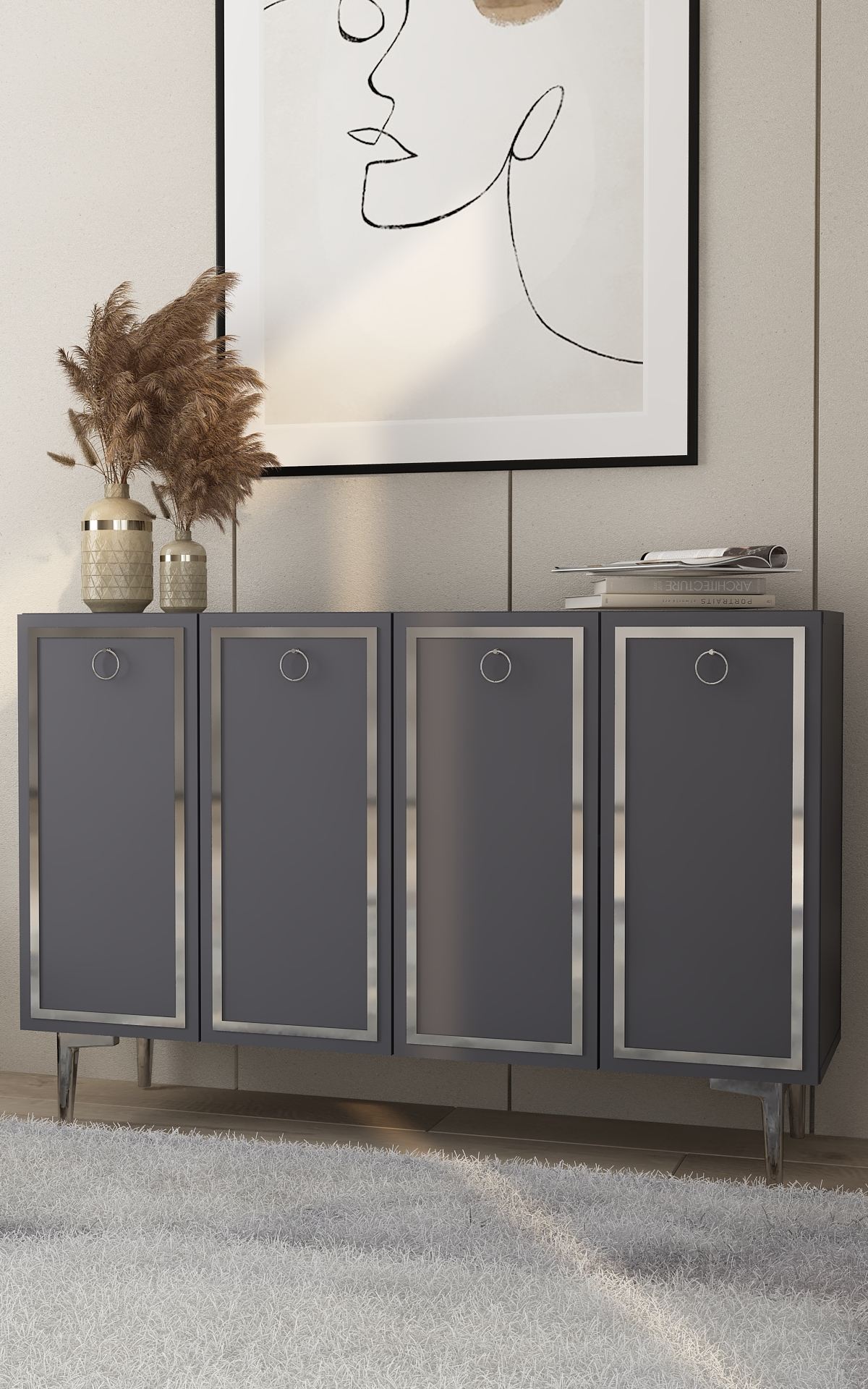 Adicione um toque de sofisticação à sua casa com este console, que apresenta um design elegante que certamente impressionará seus convidados. A combinação das cores Antracite e Prata traz um toque contemporâneo a qualquer ambiente.