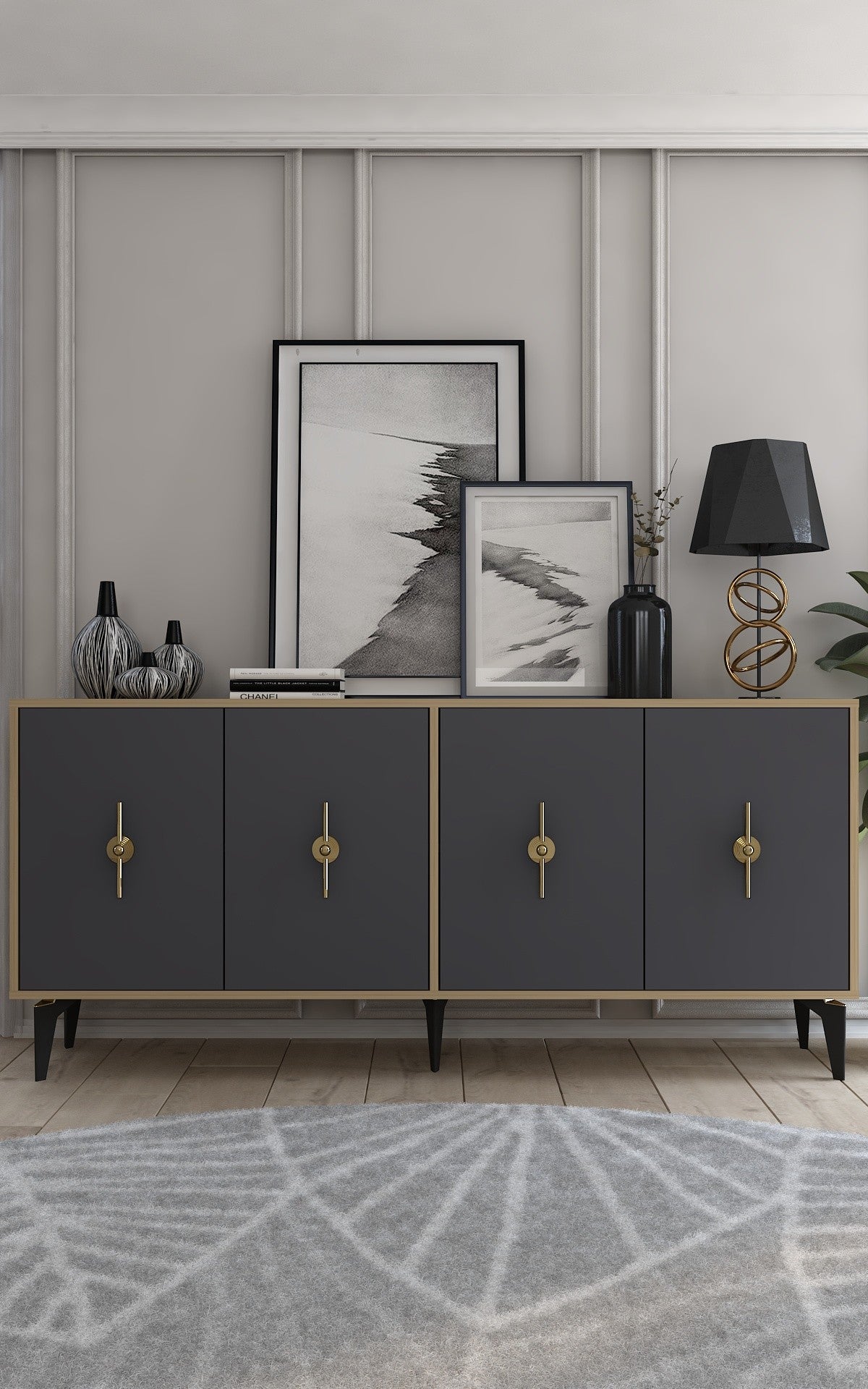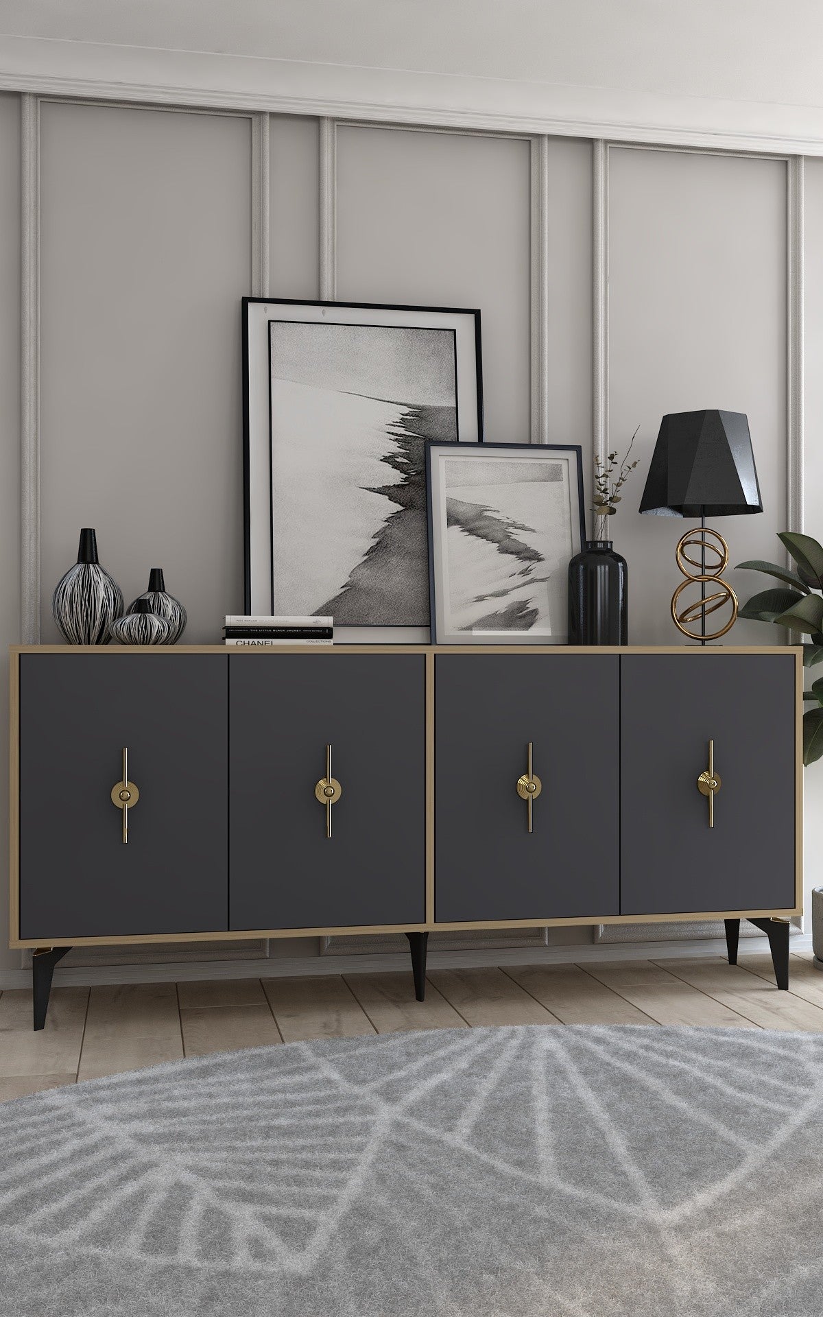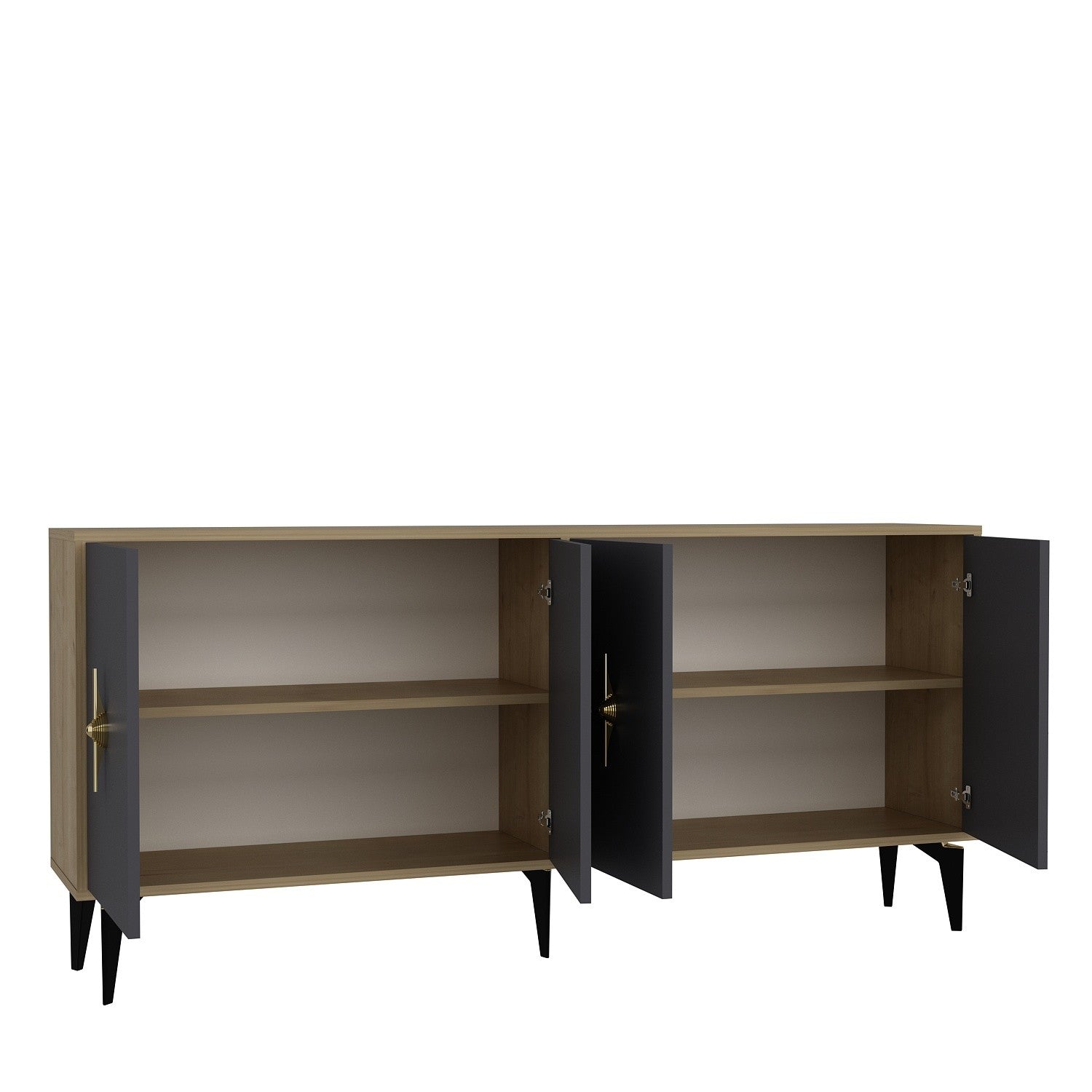 Aparador – 180cm x 82,6cm x 35cm – Carvalho Safira e Antracite – Aglomerado revestido de melamina