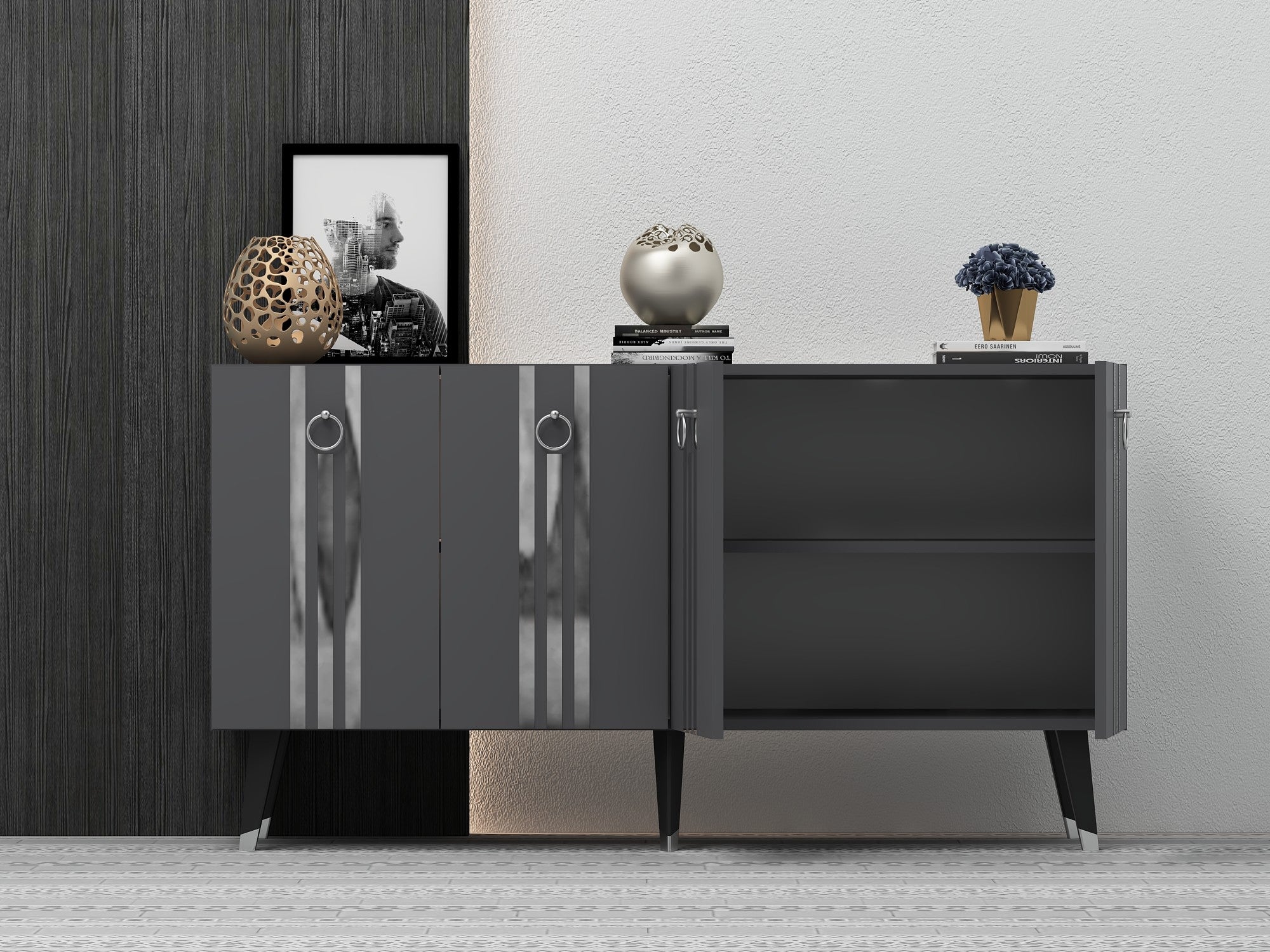 Aparador – 150 cm – Antracite e Prata – Painéis de partículas