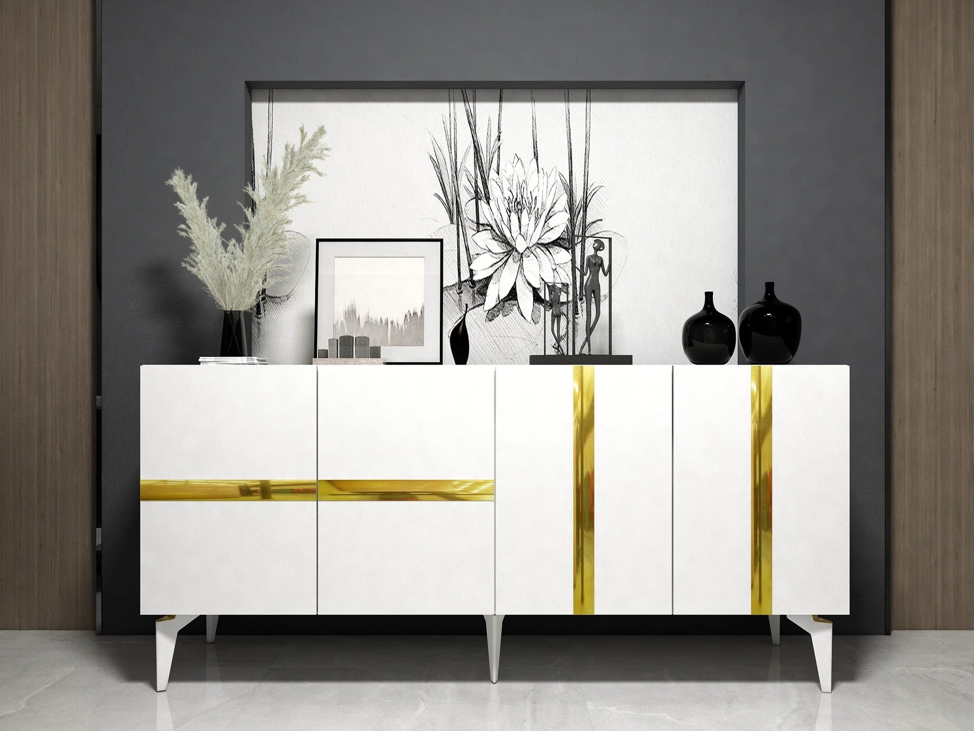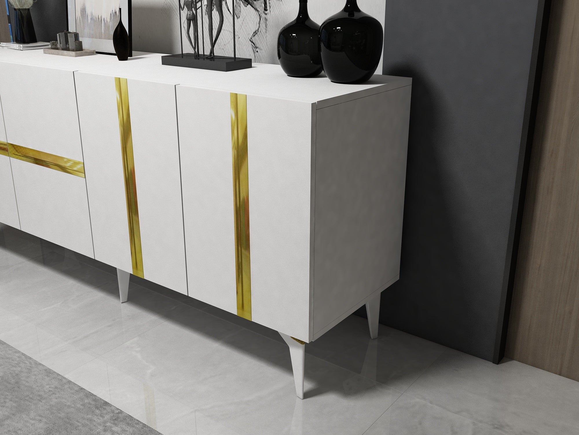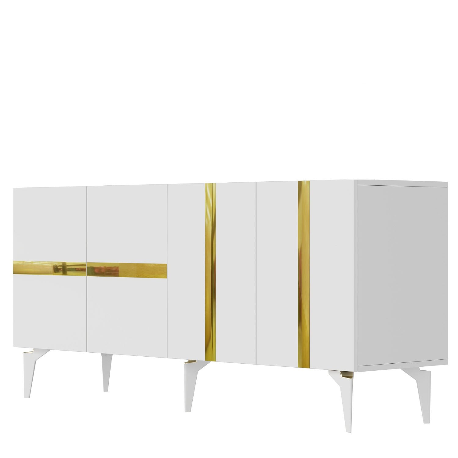 Aparador – 150cm x 40cm x 79cm – Branco e Dourado – Painel de Partículas