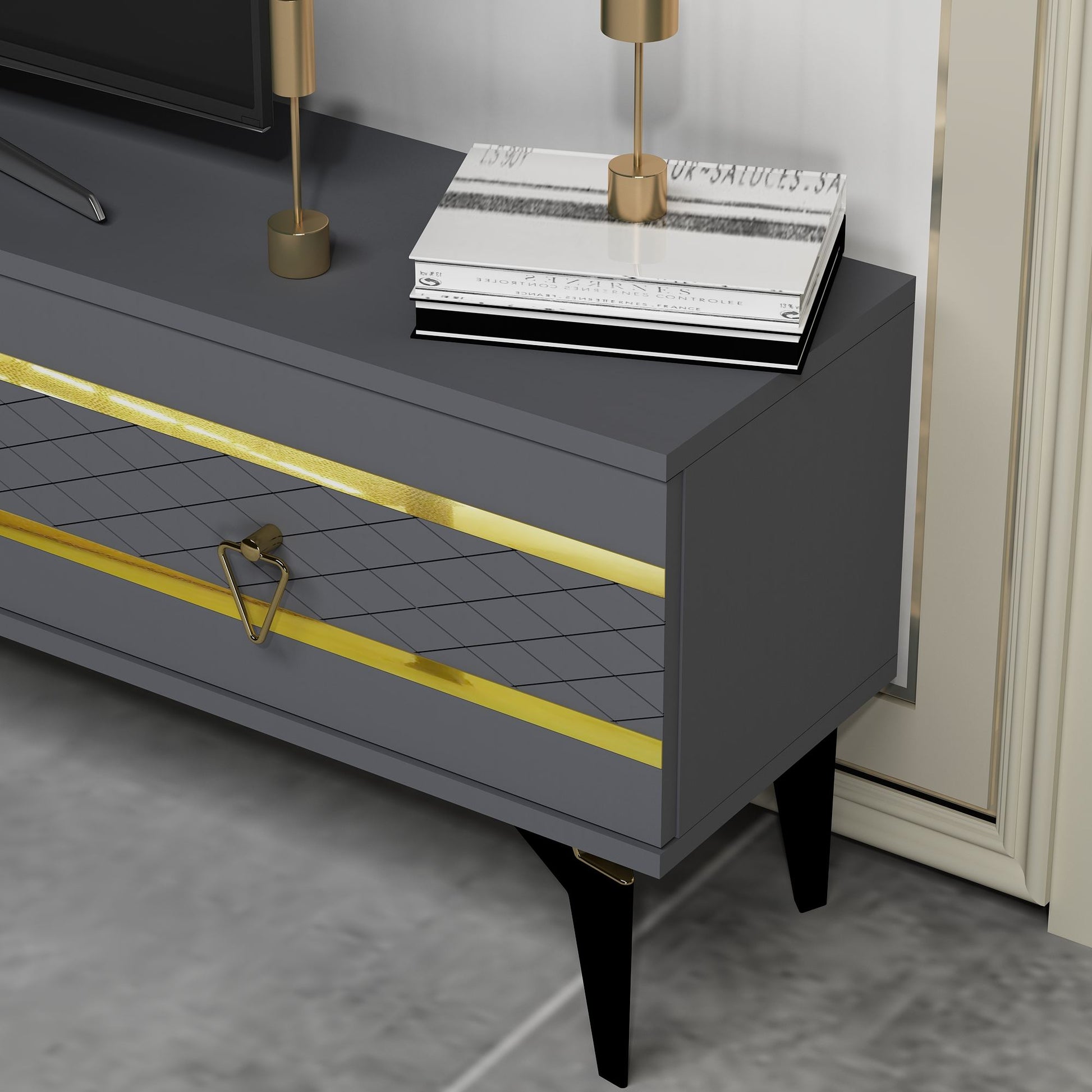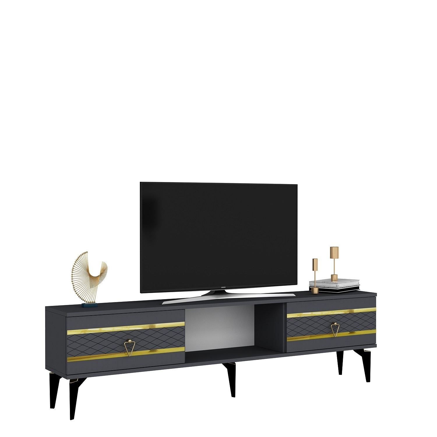 Móvel de TV – 150 cm x 44,6 cm x 29,6 cm – Antracite e Dourado – Painéis de partículas revestidos a melamina