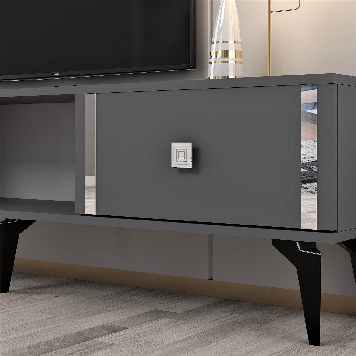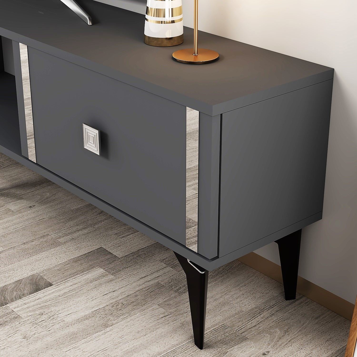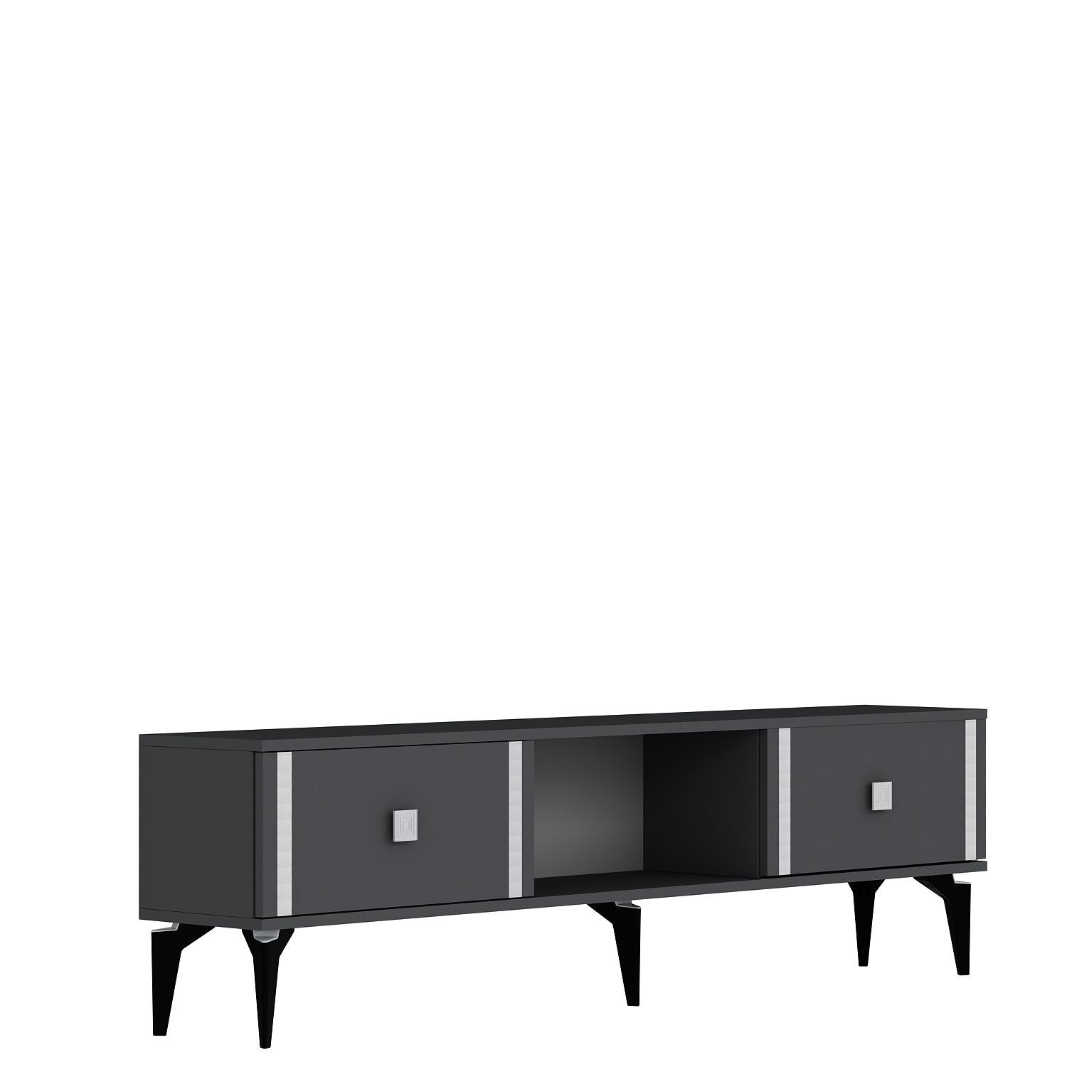 Móvel de TV – 150 cm largura – Antracite e Prata – Painéis de partículas revestidos a melamina