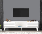 As linhas simples e a cor branca deste suporte para televisor irão elevar instantaneamente o aspeto da sua sala de estar. O seu design minimalista complementará qualquer estilo de decoração, do moderno ao tradicional.