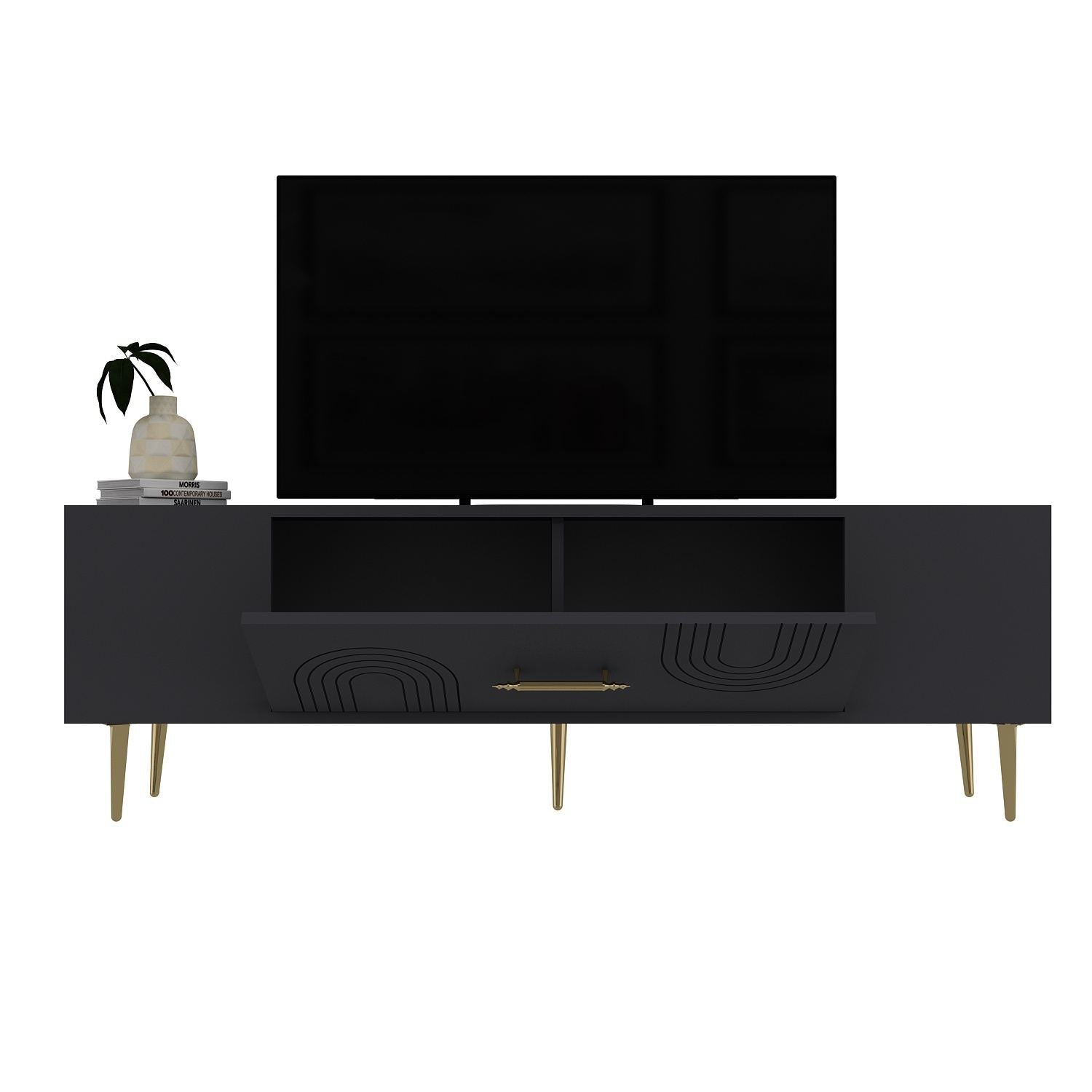 Móvel de TV – 150 cm x 48,2 cm x 29,6 cm – Antracite e Dourado – Painéis de partículas com revestimento em melamina