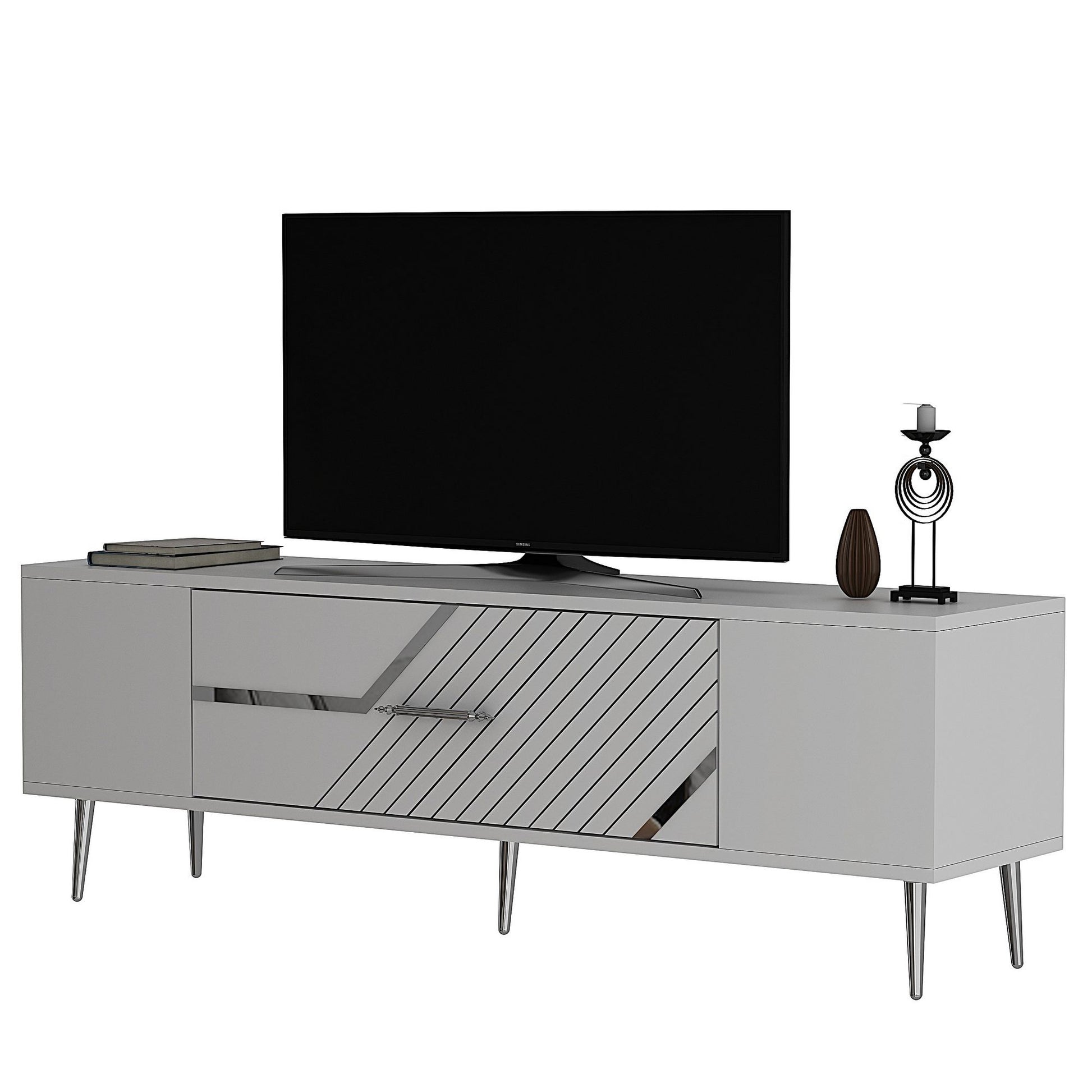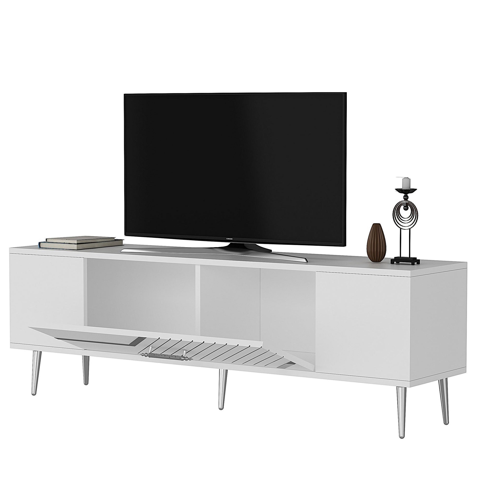 Móvel de TV – 150 cm x 48,2 cm x 29,6 cm – Branco e Prata – Painel de Partículas Revestido a Melamina