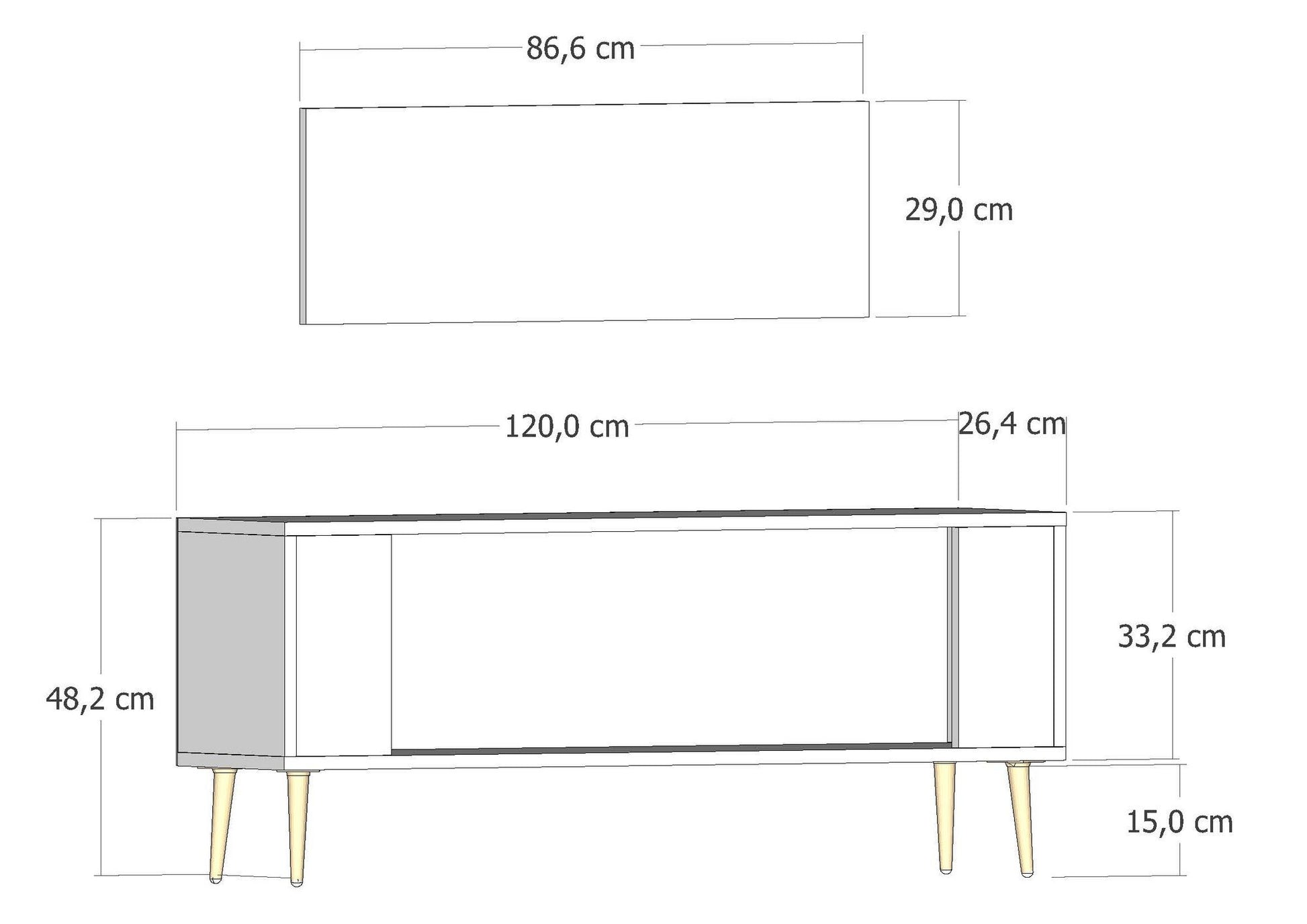Móvel de TV – 120 cm x 48,2 cm x 26,4 cm – Branco e Prata – Painel de partículas