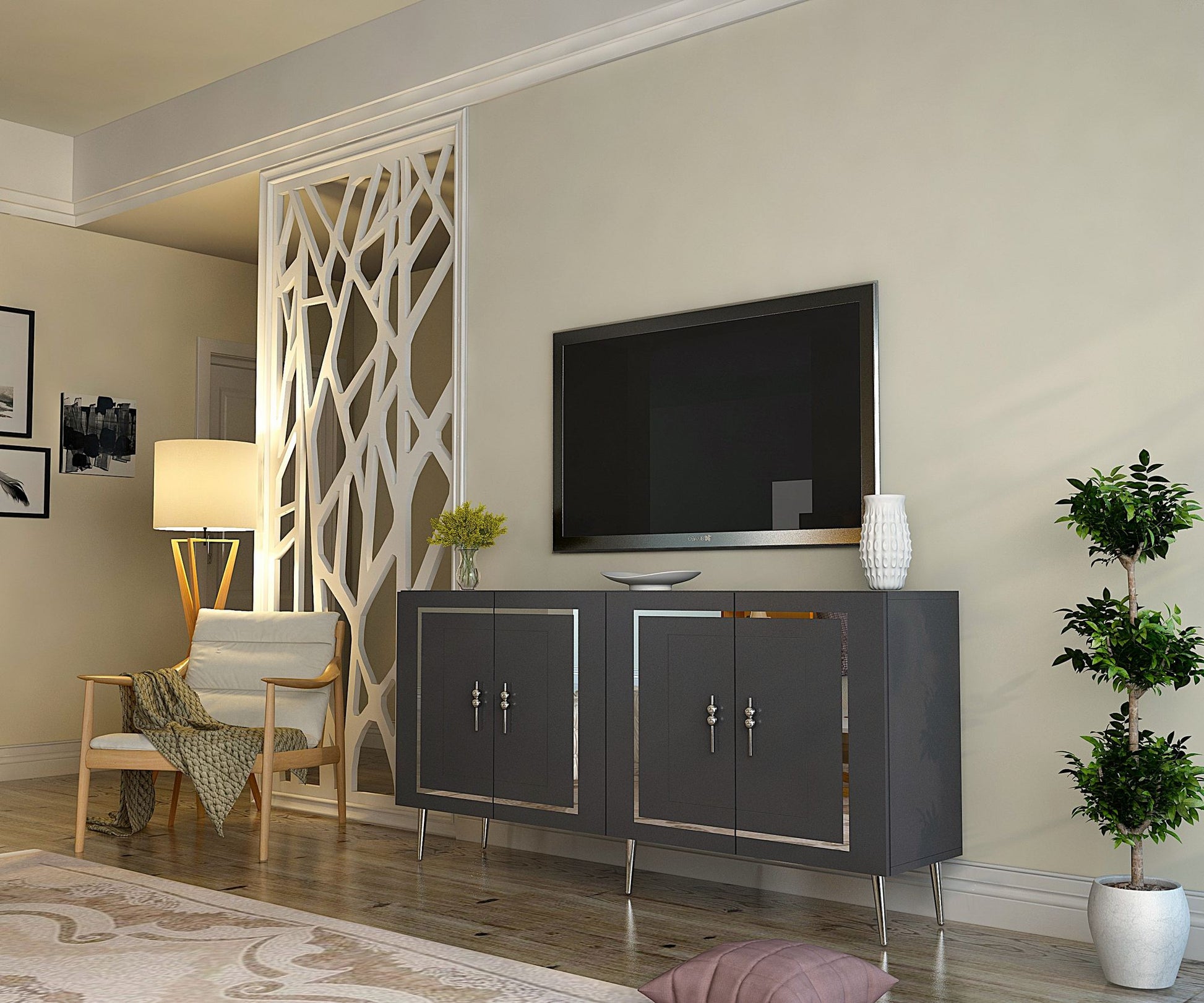 Com seu design elegante e linhas limpas, este console é a adição perfeita para qualquer casa moderna. As cores antracite e prata criam um contraste marcante que fará uma declaração em qualquer cômodo.