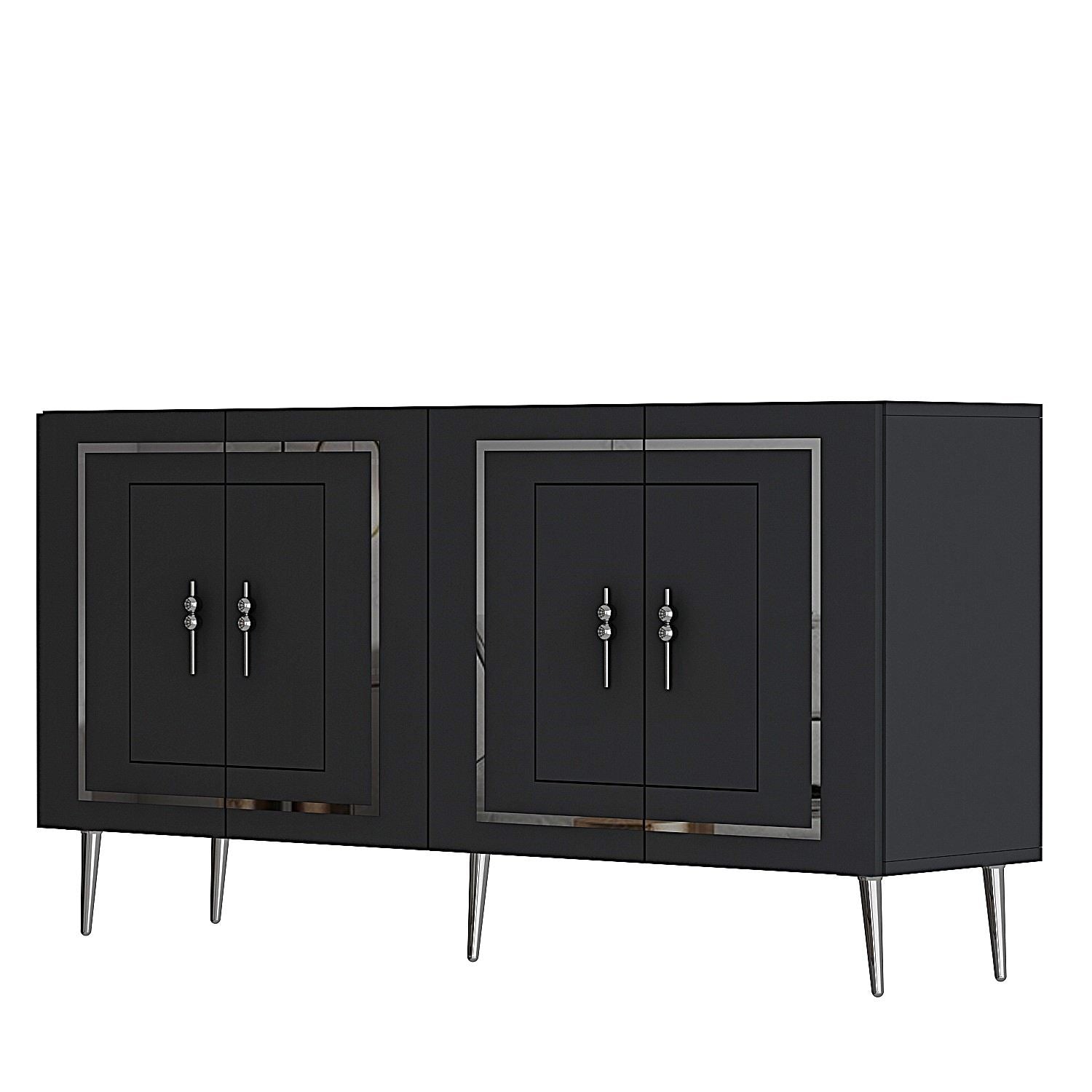 Aparador – 150cm x 75cm x 35cm – Antracite e Prata – Aglomerado com revestimento de melamina