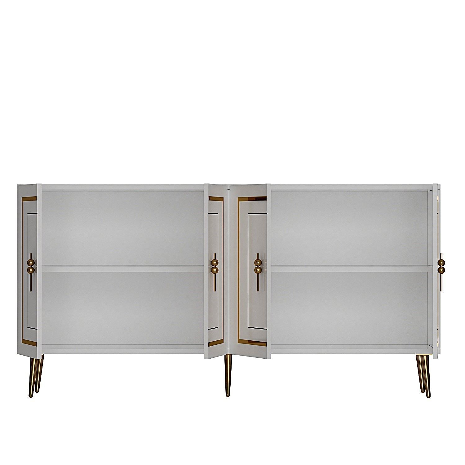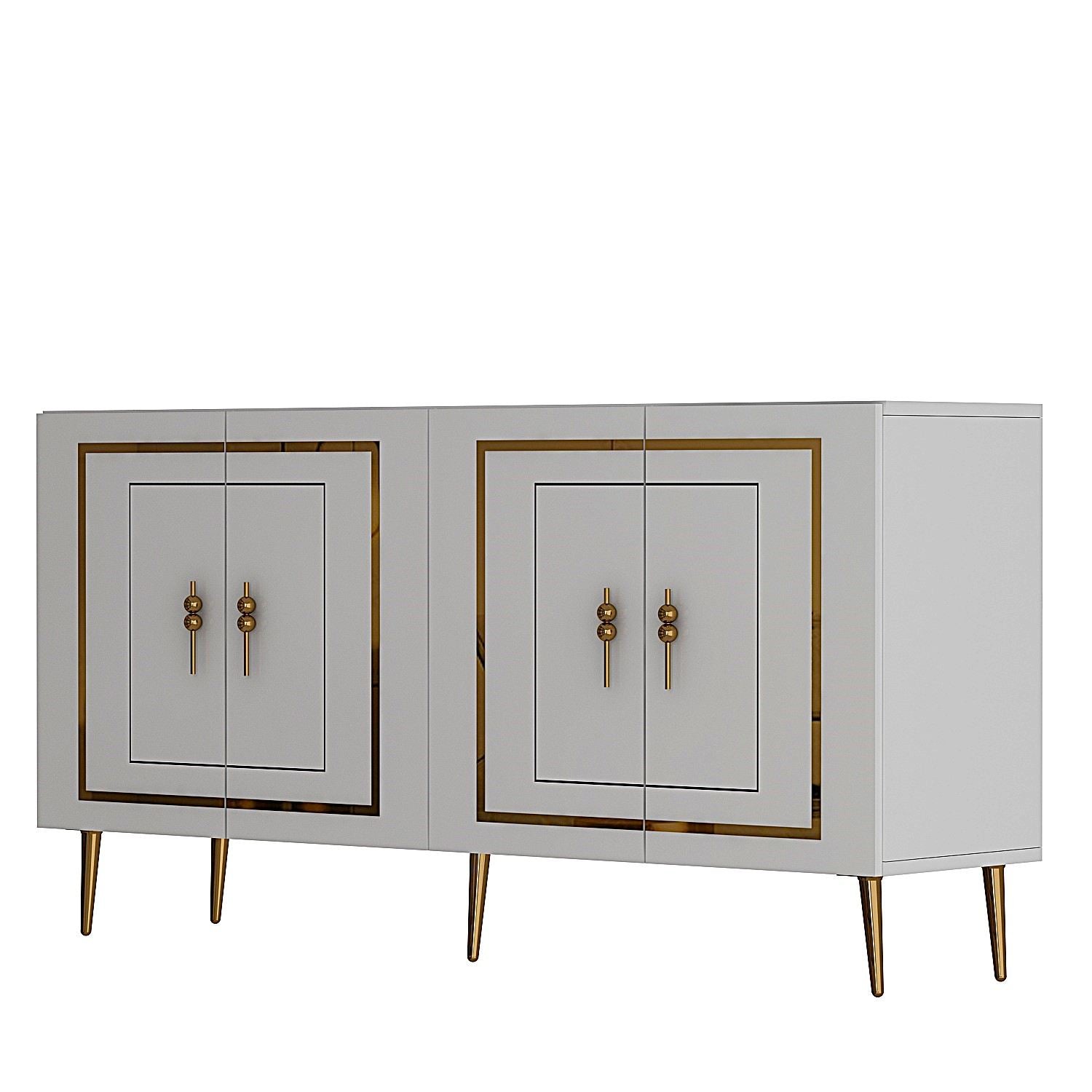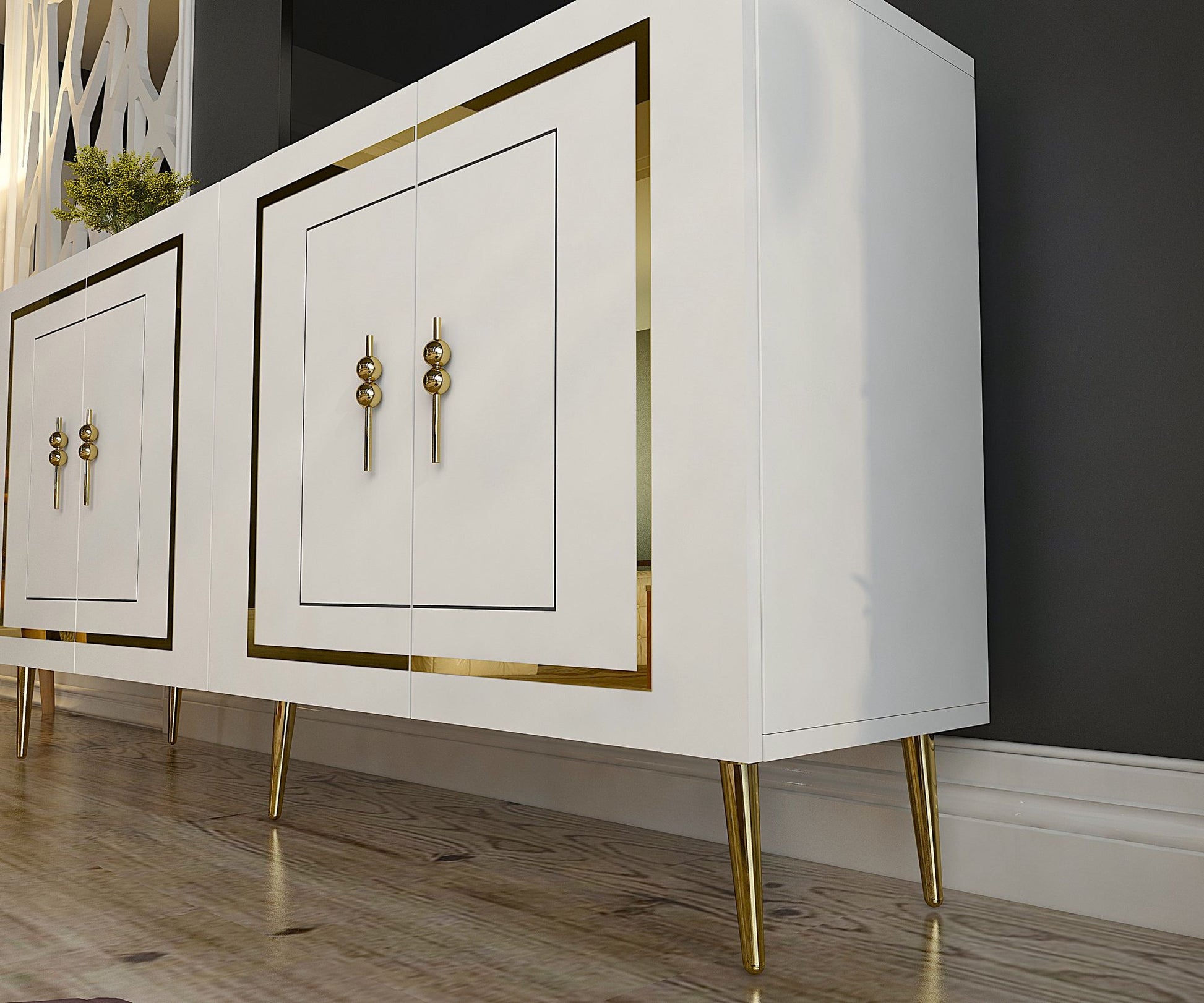 Transforme seu espaço de vida com nosso deslumbrante console que exala elegância e sofisticação. Feito de 100% de MDF revestido de melamina, este console não é apenas durável, mas também incrivelmente estiloso. A combinação de cores branca e dourada adiciona um toque de luxo a qualquer ambiente, tornando-o a peça de destaque perfeita para sua casa.