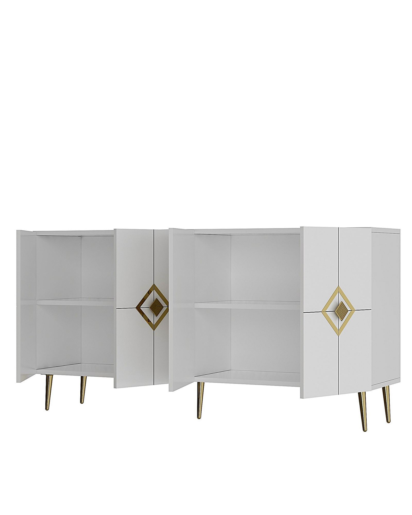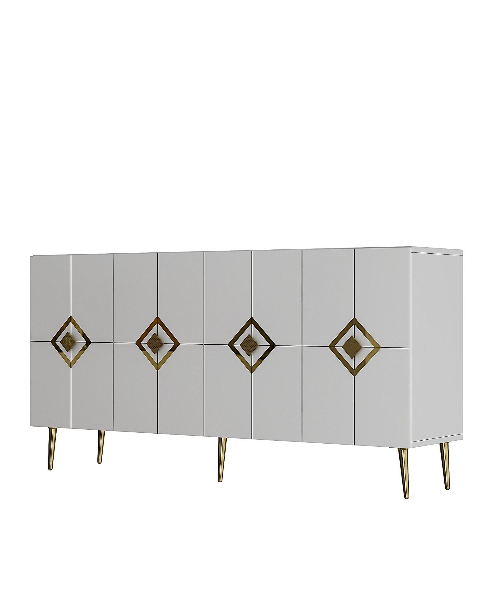 Transforme seu espaço de vida com nosso deslumbrante console que exala elegância e sofisticação. Feito de 100% de MDF revestido de melamina, este console não é apenas durável, mas também incrivelmente estiloso. A combinação de cores branca e dourada adiciona um toque de luxo a qualquer ambiente, tornando-o a peça de destaque perfeita para sua casa.