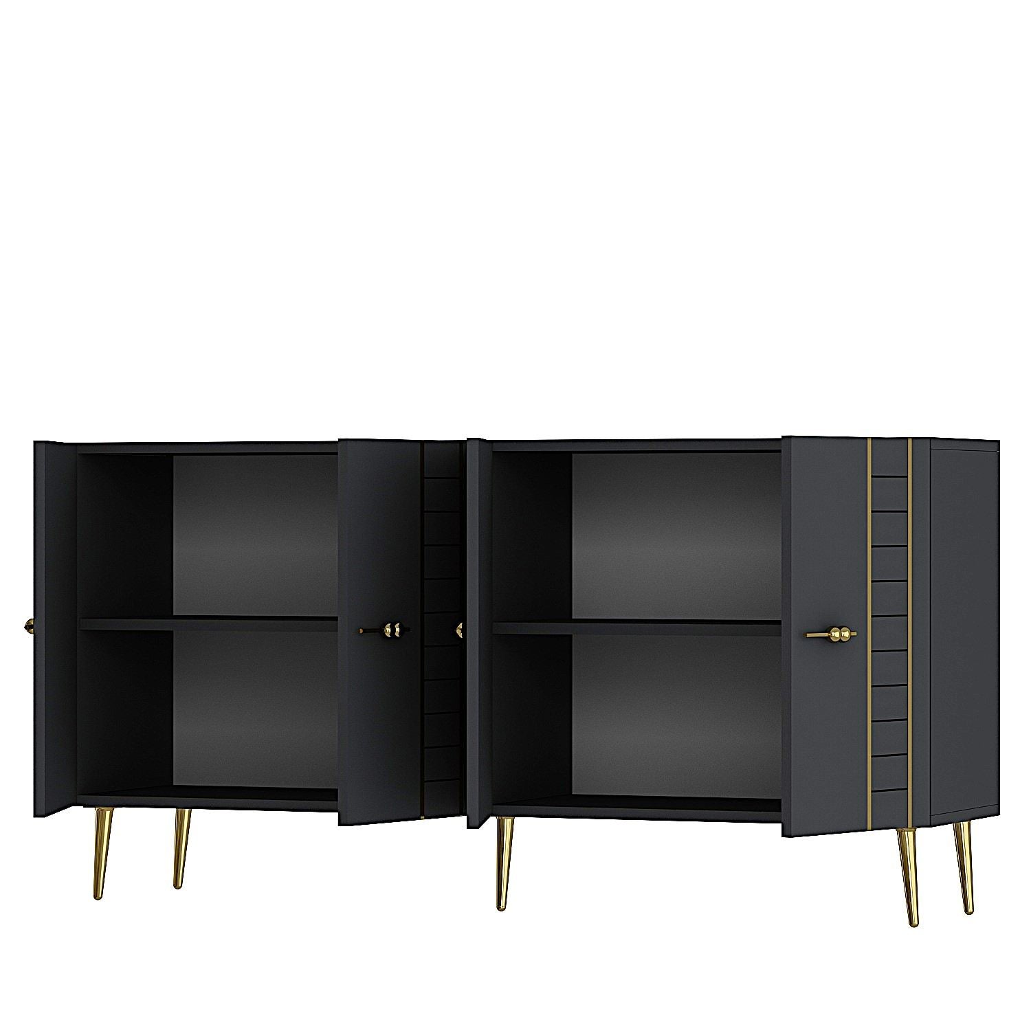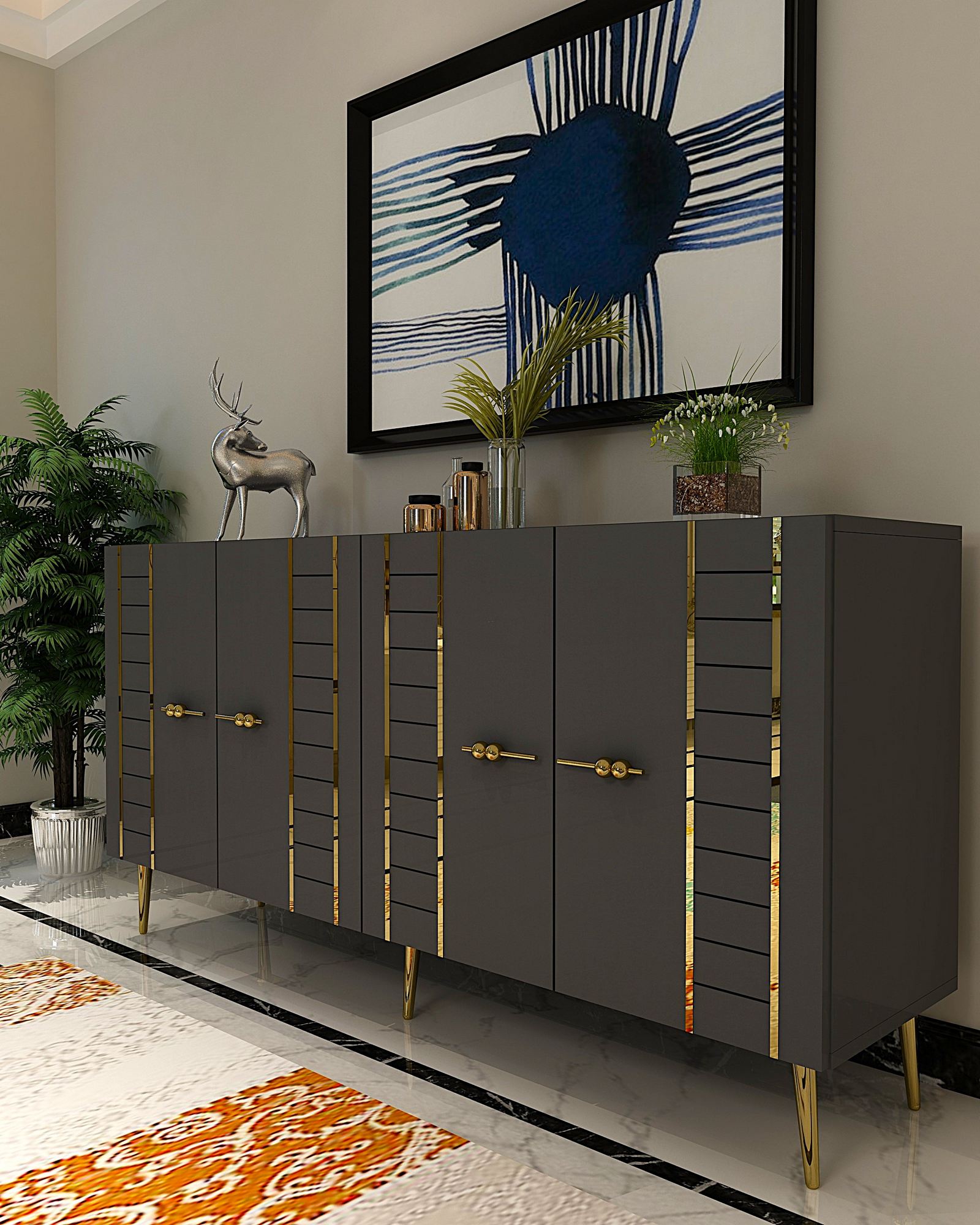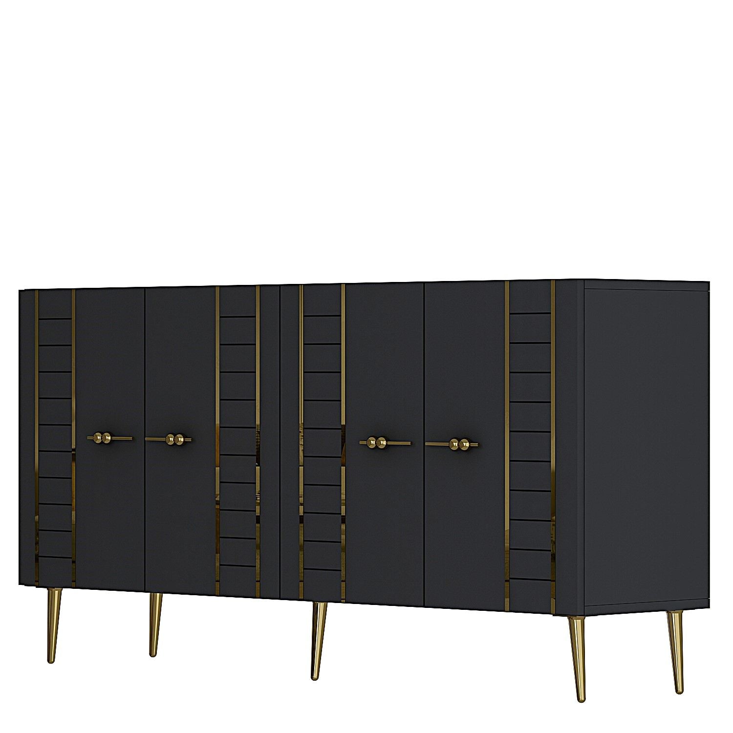 Aparador em Aglomerado Revestido de Melamina – 150cm x 75cm x 35cm – Antracite e Ouro