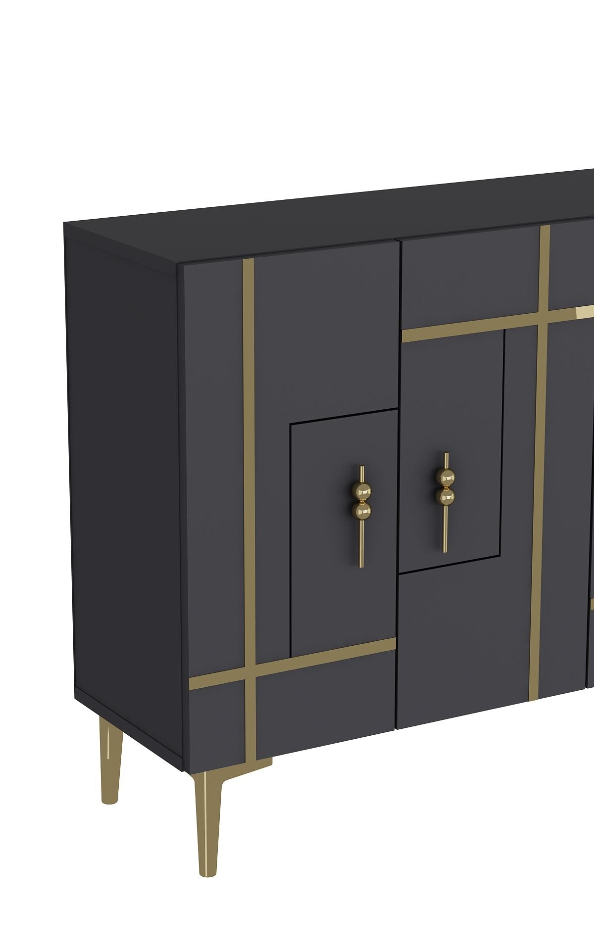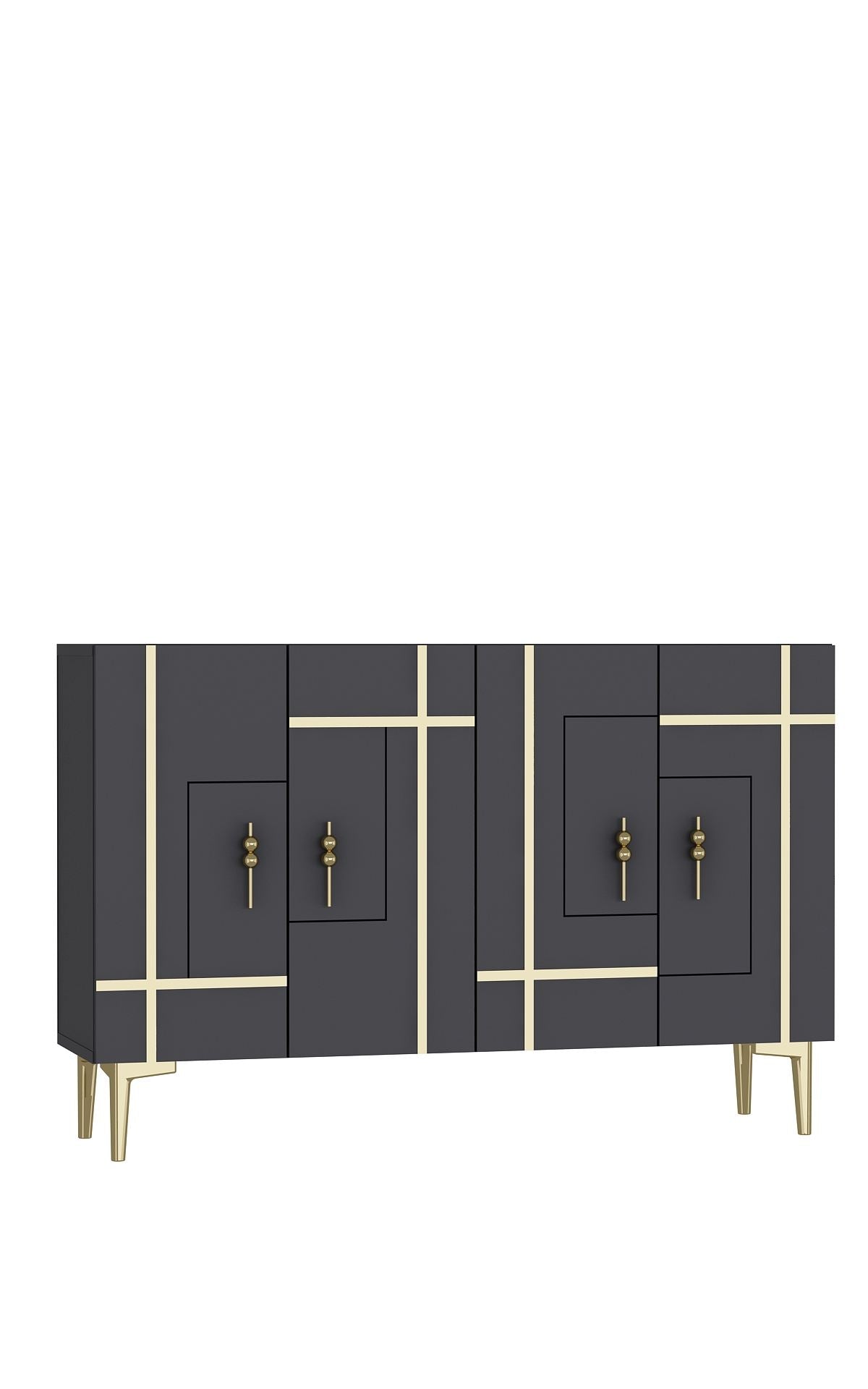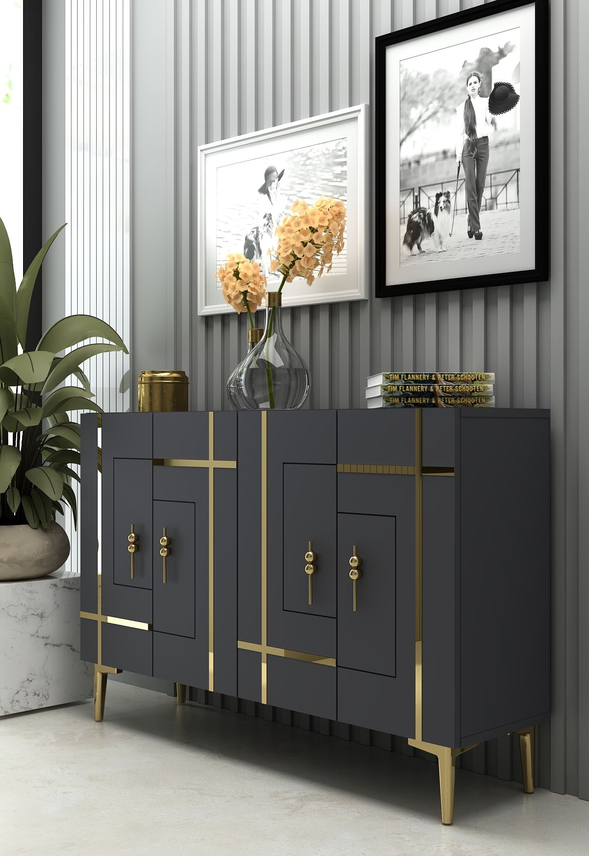 Aparador – 120 cm x 80 cm x 29,6 cm – Antracite e Ouro – Painel de partículas revestido em melamina