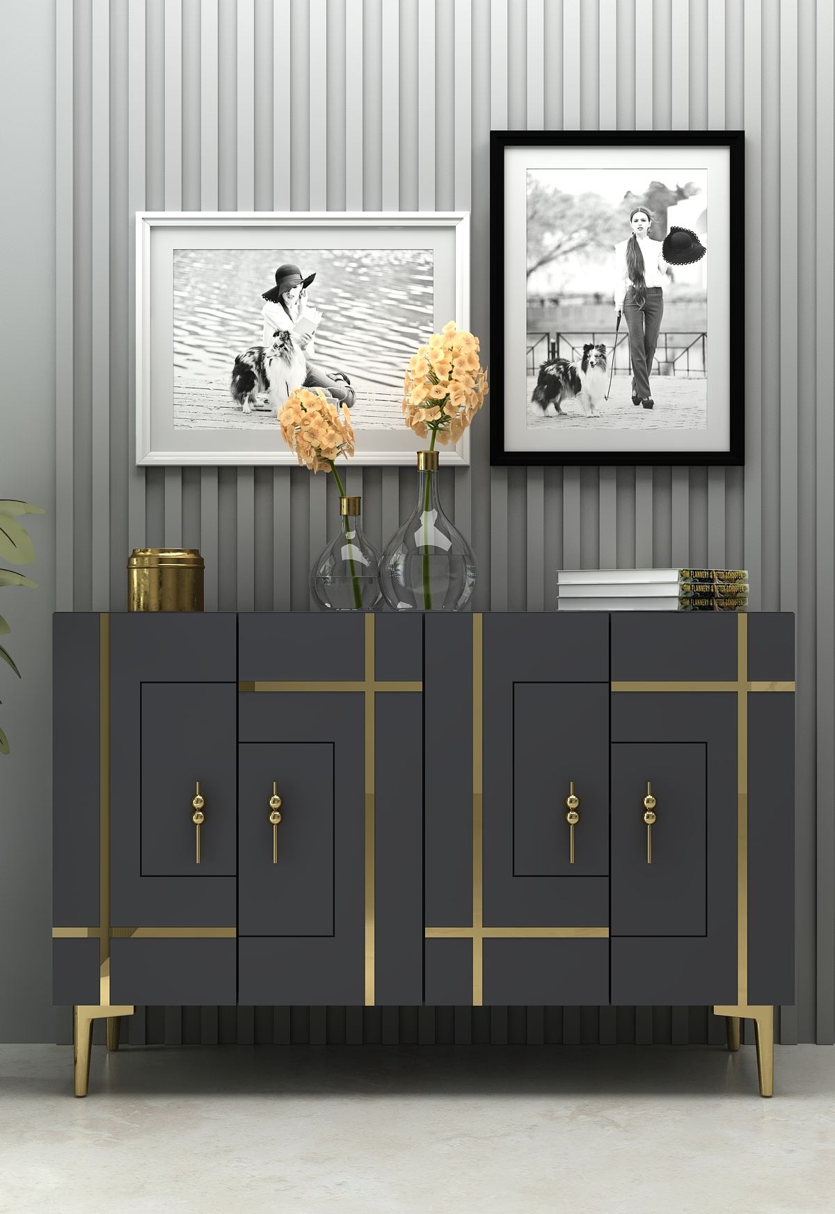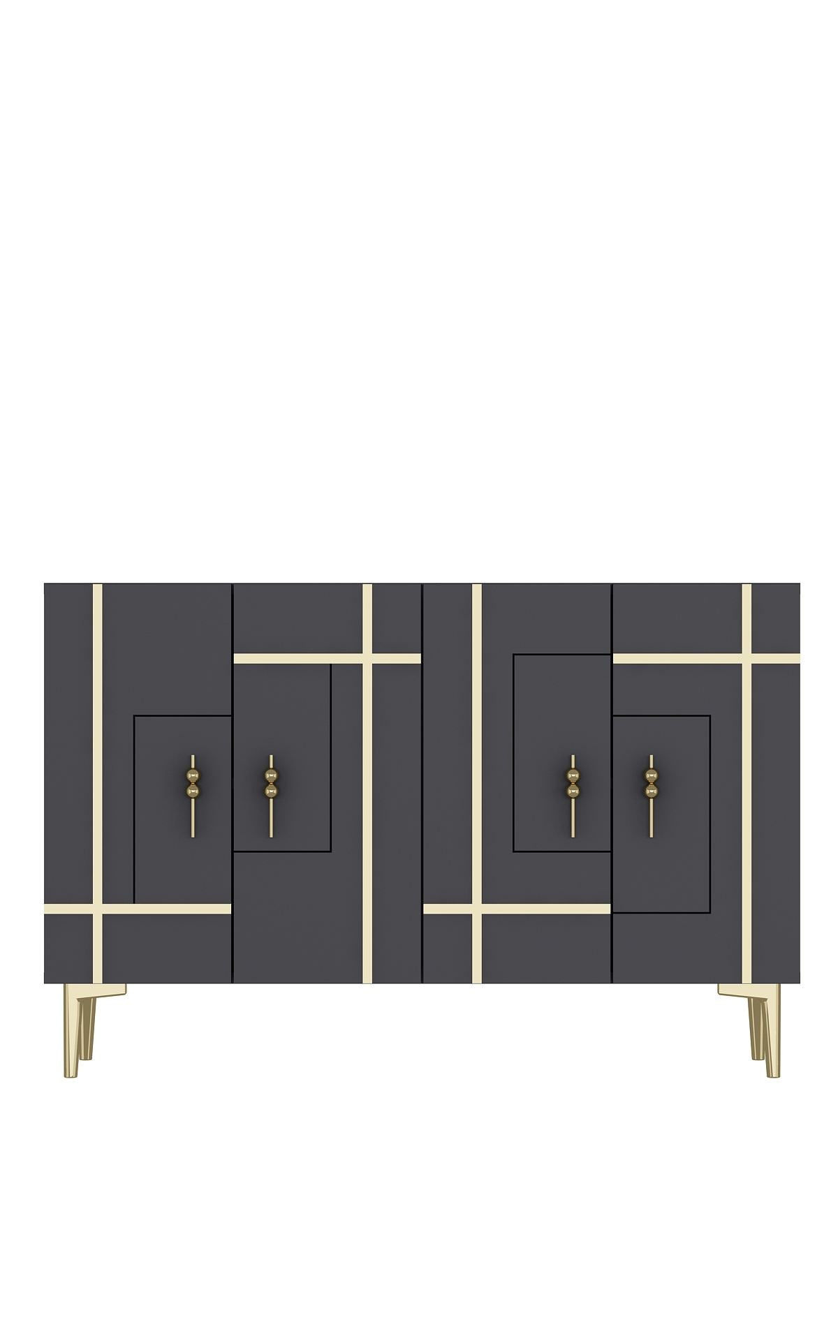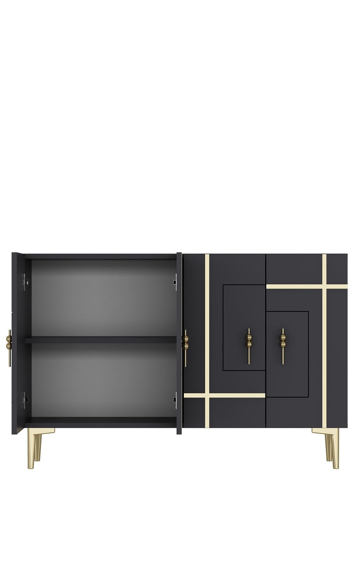 Aparador – 120 cm x 80 cm x 29,6 cm – Antracite e Ouro – Painel de partículas revestido em melamina