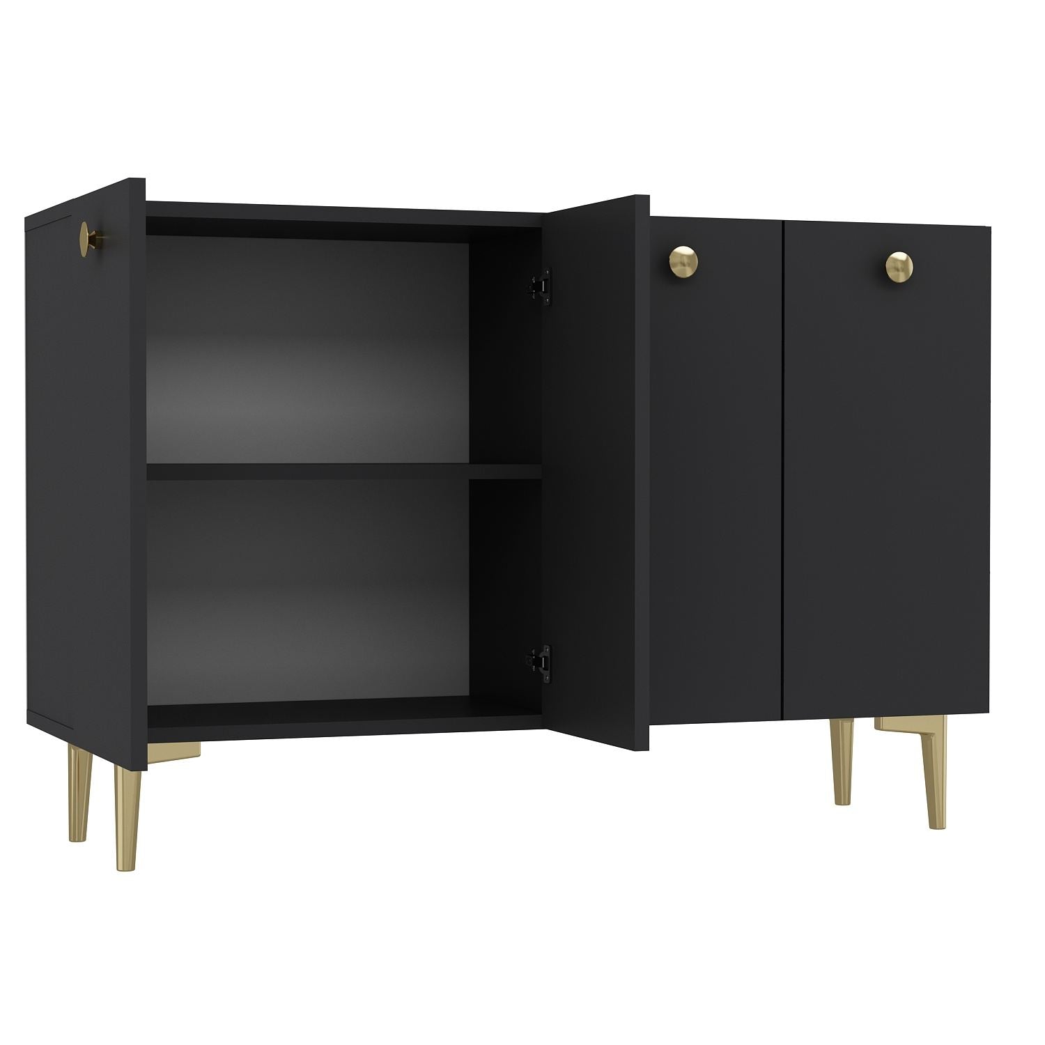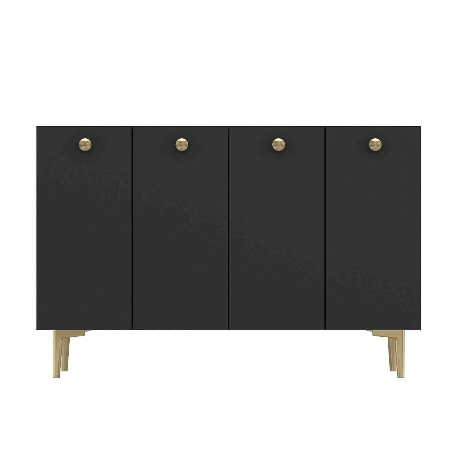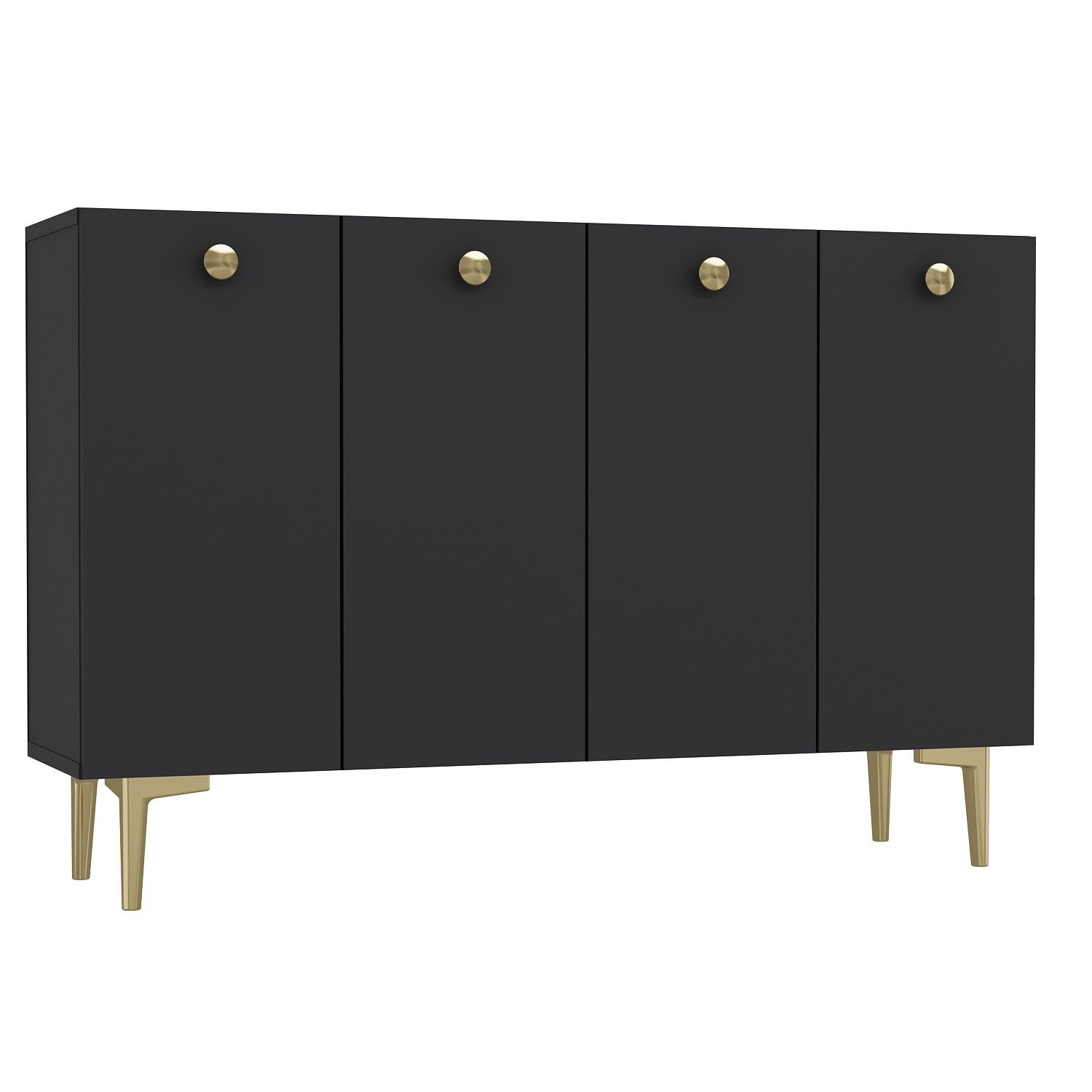 Aparador – 120 cm x 80 cm x 29,6 cm – Antracite e Ouro – Painel de partículas revestido em melamina