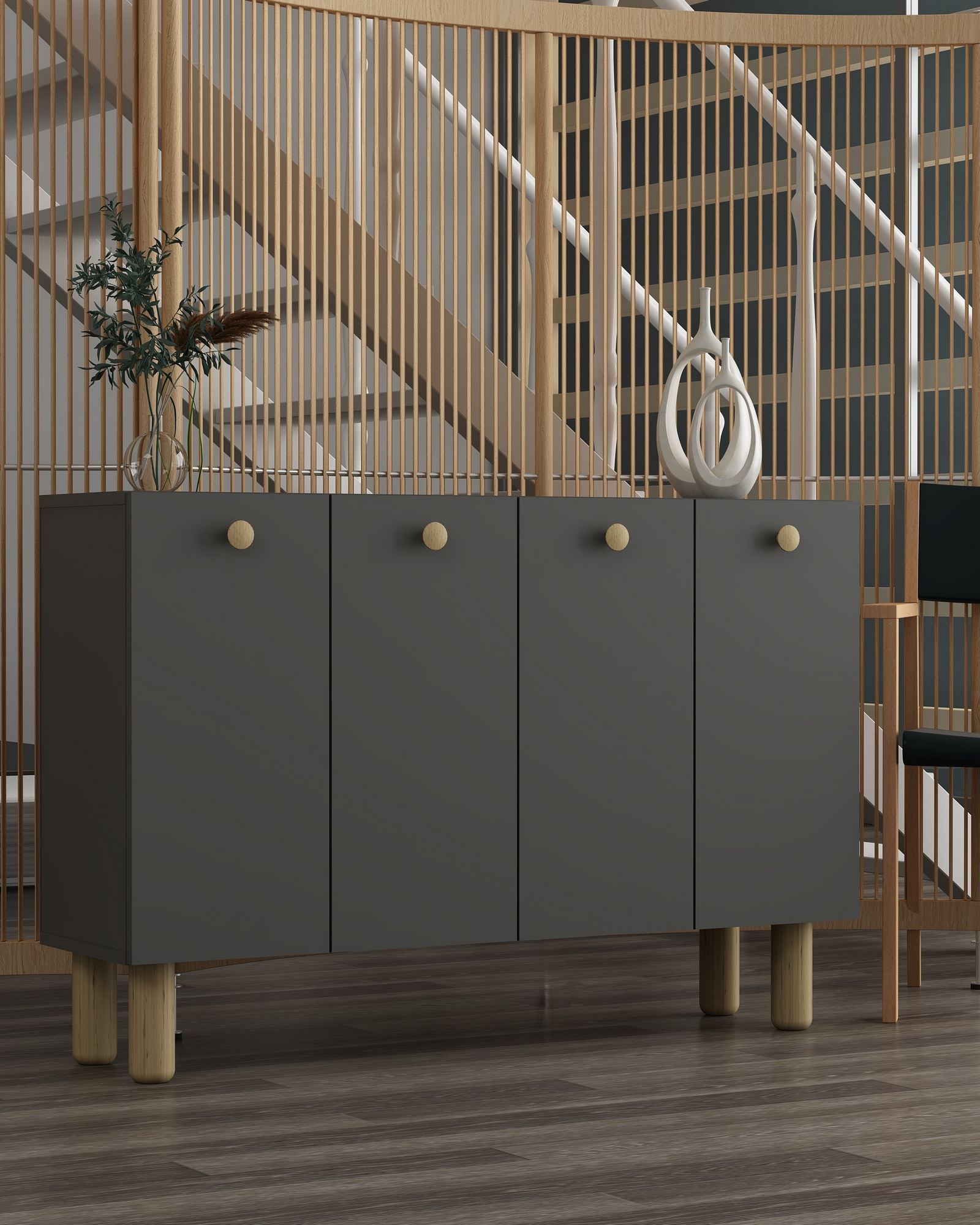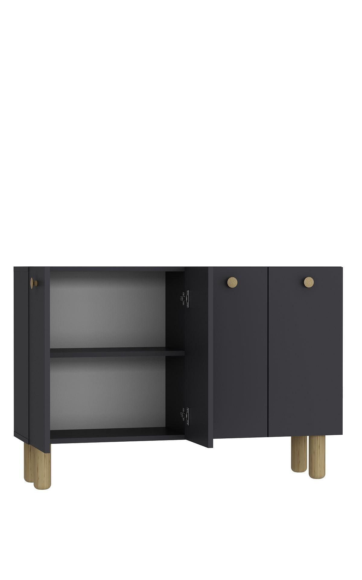 Aparador – 120cm largura, 80cm altura, 29,6cm profundidade – Antracite e Carvalho Safira – Aglomerado