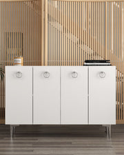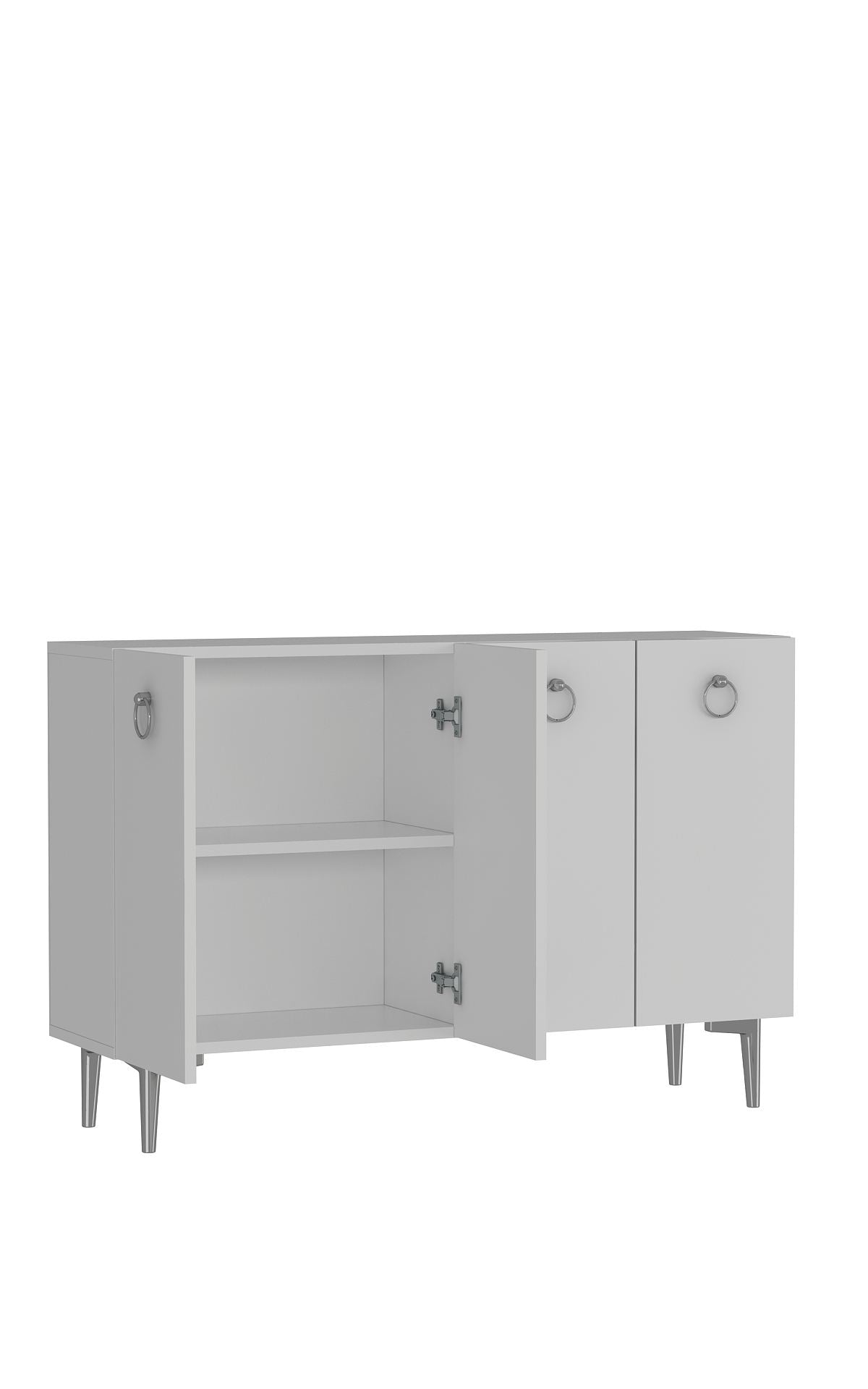 Aparador – 120 cm x 80 cm x 29,6 cm – Branco e Prata – Aglomerado revestido de melamina