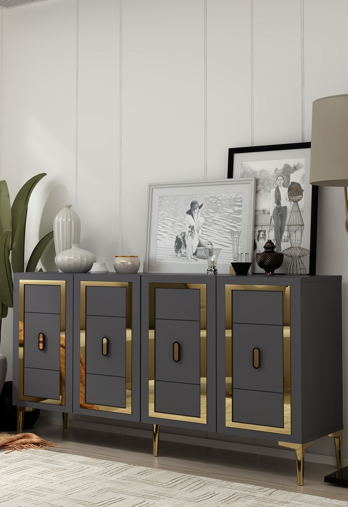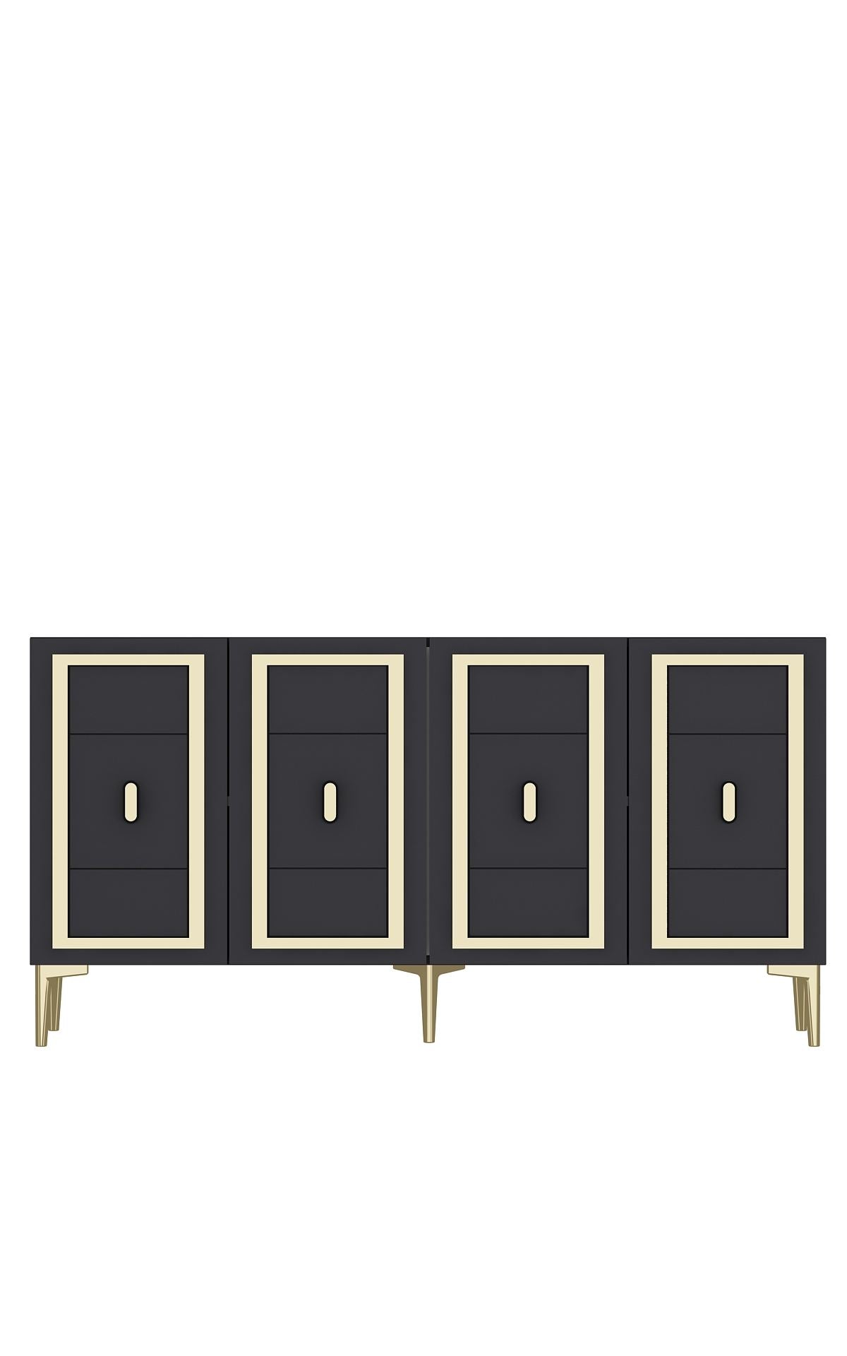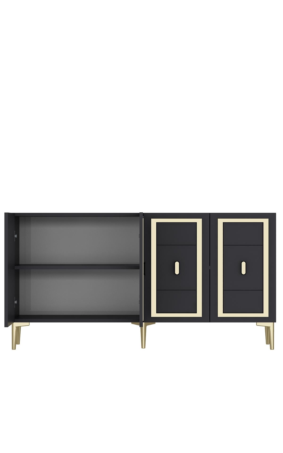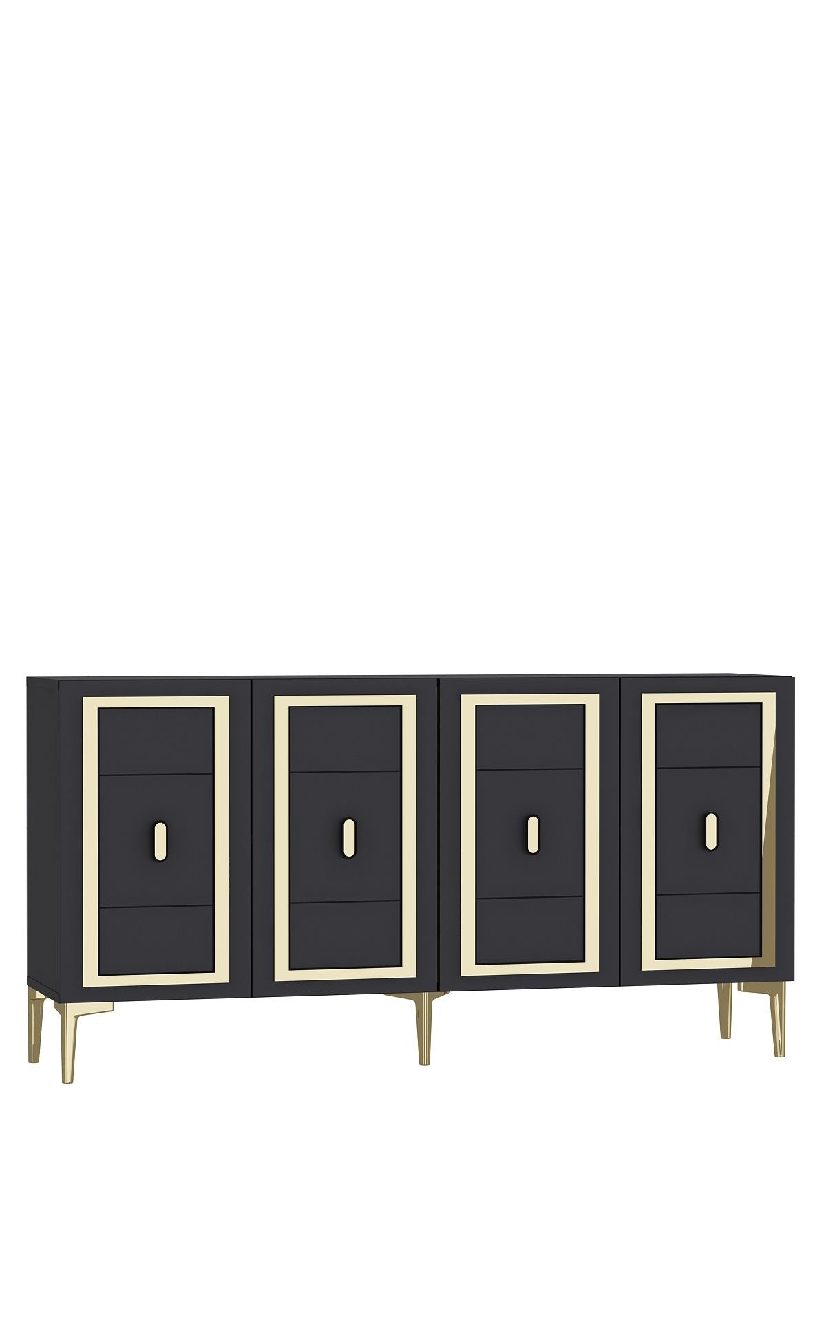 Aparador – 150cm x 75cm x 35cm – Antracite e Dourado – Aglomerado