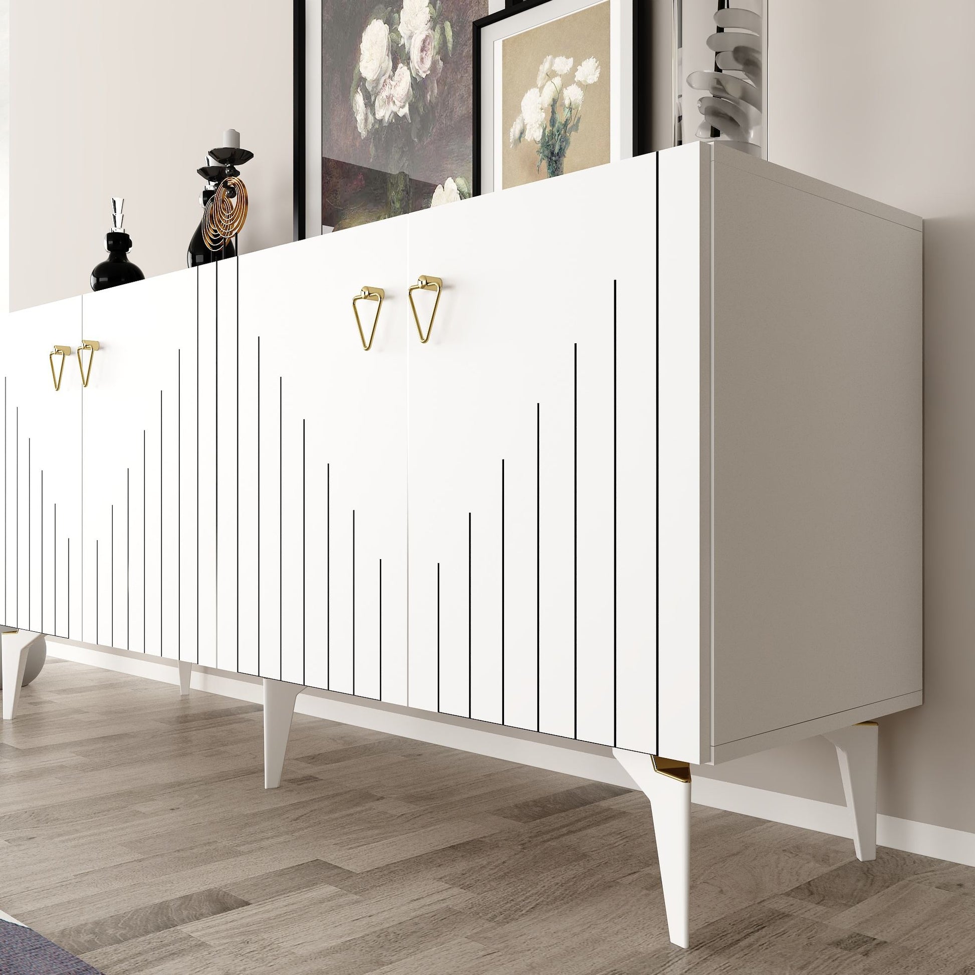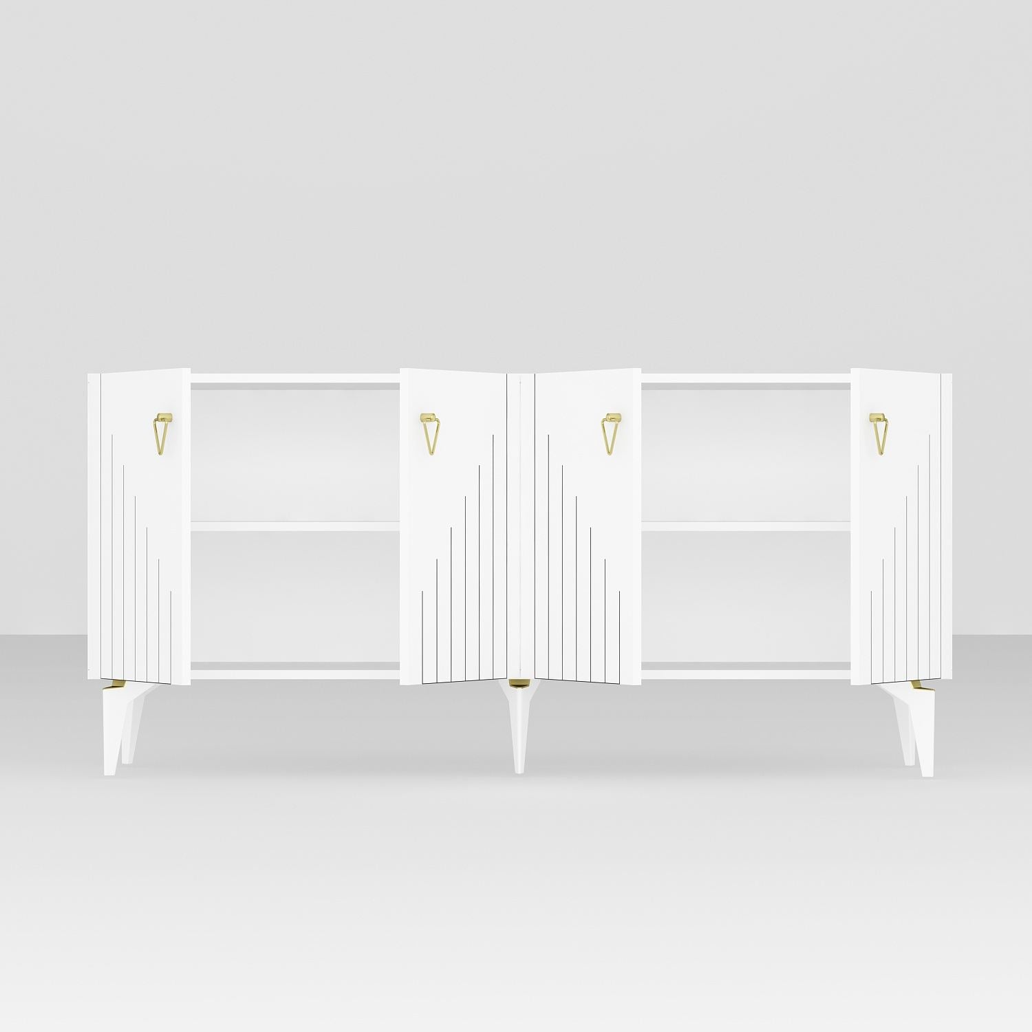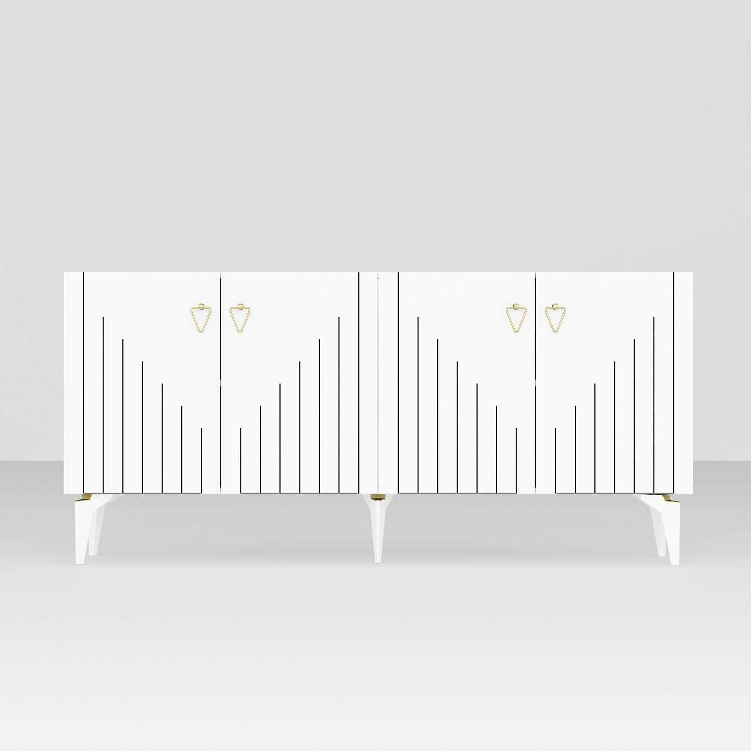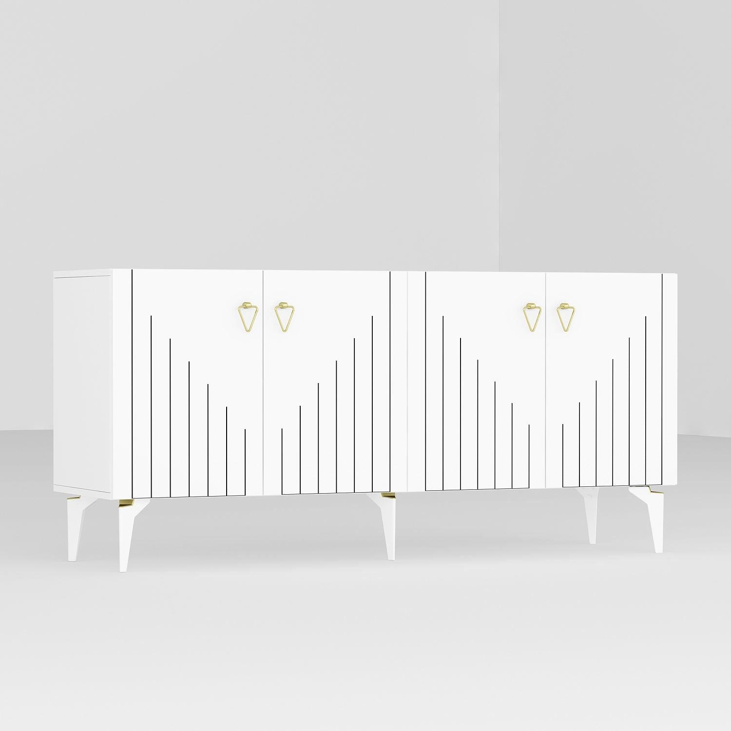 Aparador de aglomerado revestido de melamina – 150 cm x 79 cm x 40 cm – Branco e Dourado