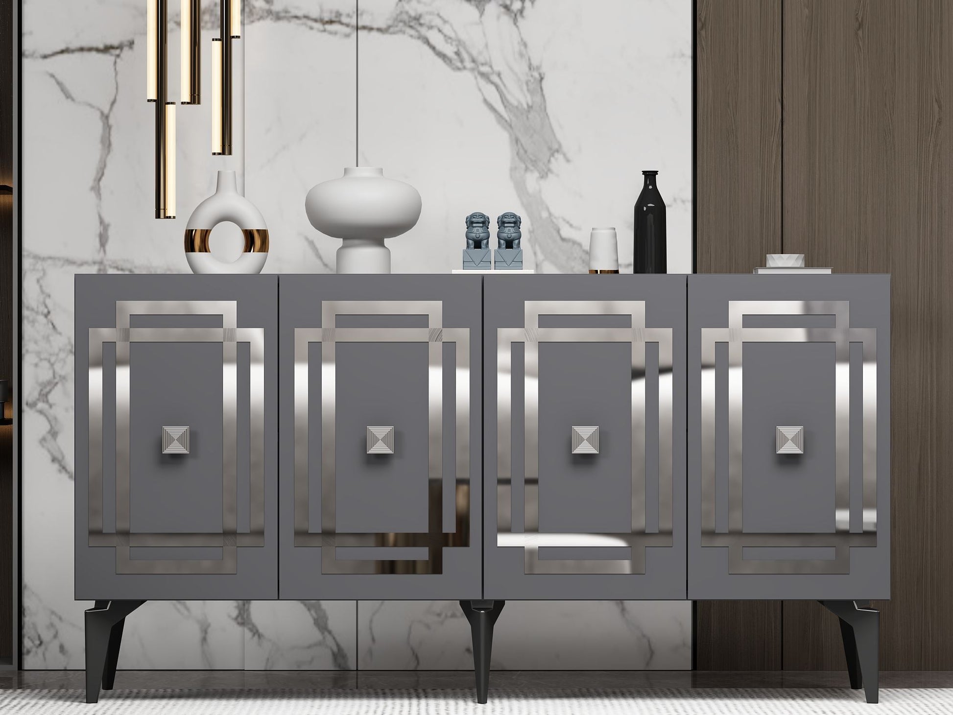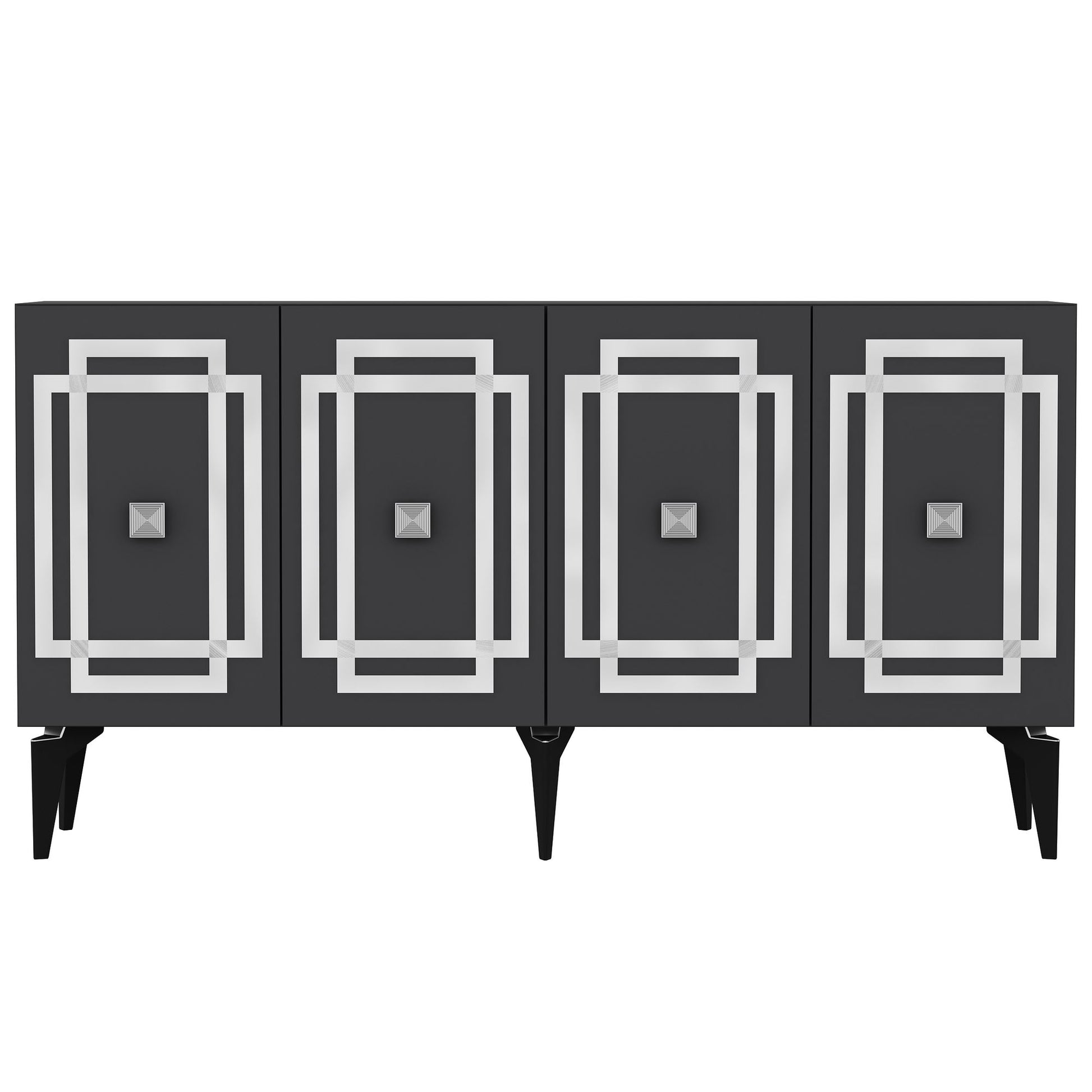 Aparador – 150cm x 79cm x 40cm – Antracite e Prata – Aglomerado