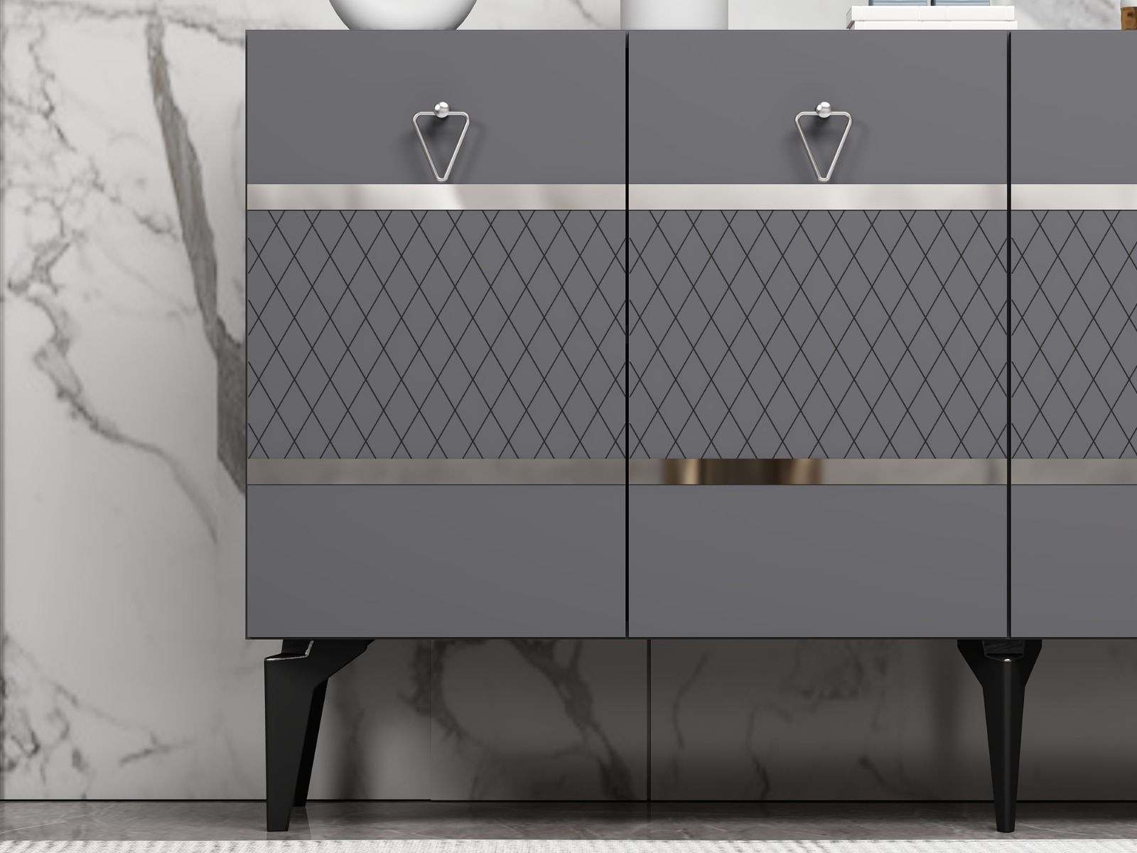Aparador – 150cm x 79cm x 40cm – Antracite e Prata – Aglomerado