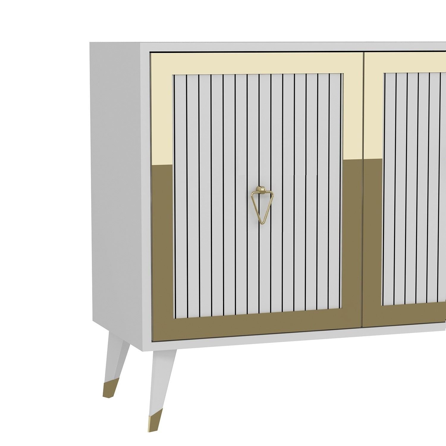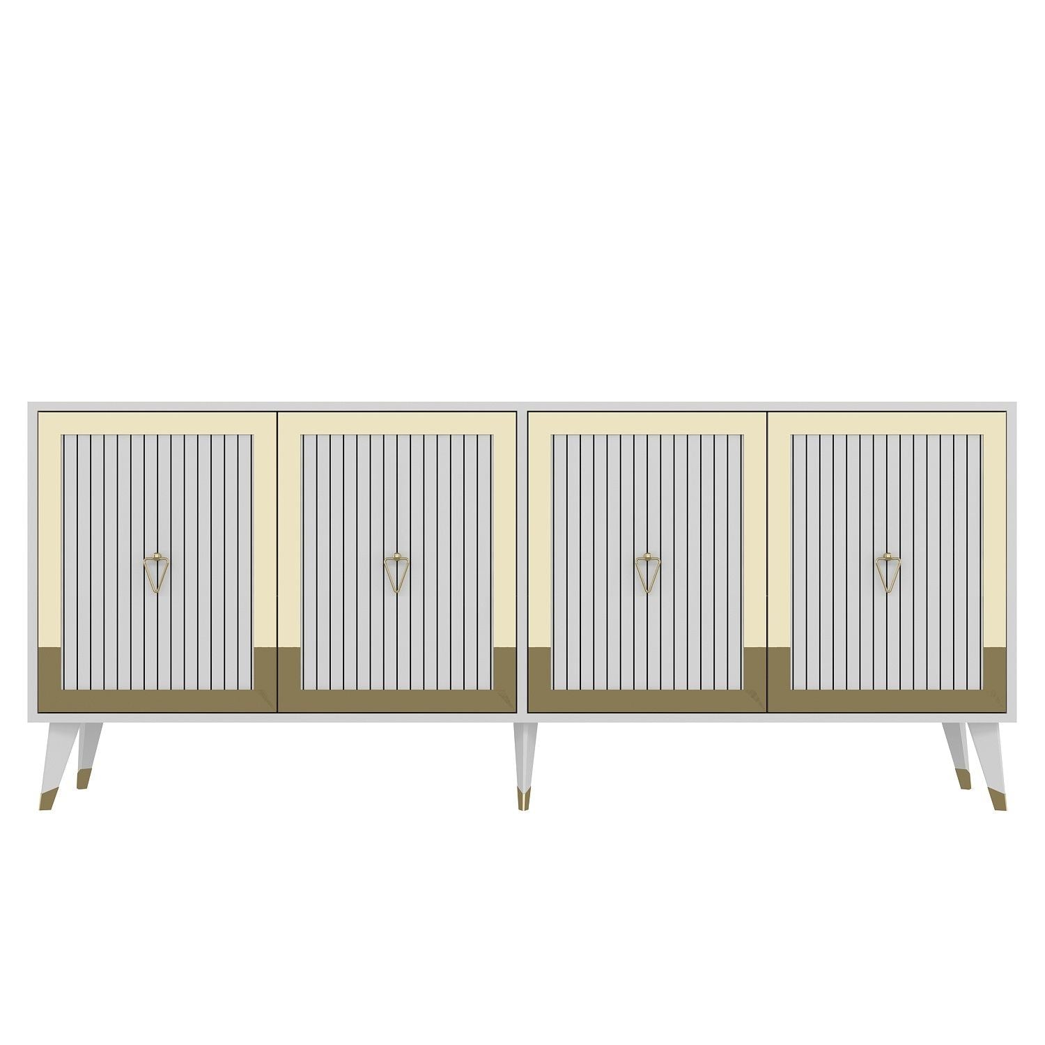 Aparador de Aglomerado – 180cm largura, 78.6cm altura, 35cm profundidade – Branco e Dourado – Aglomerado Revestido de Melamina