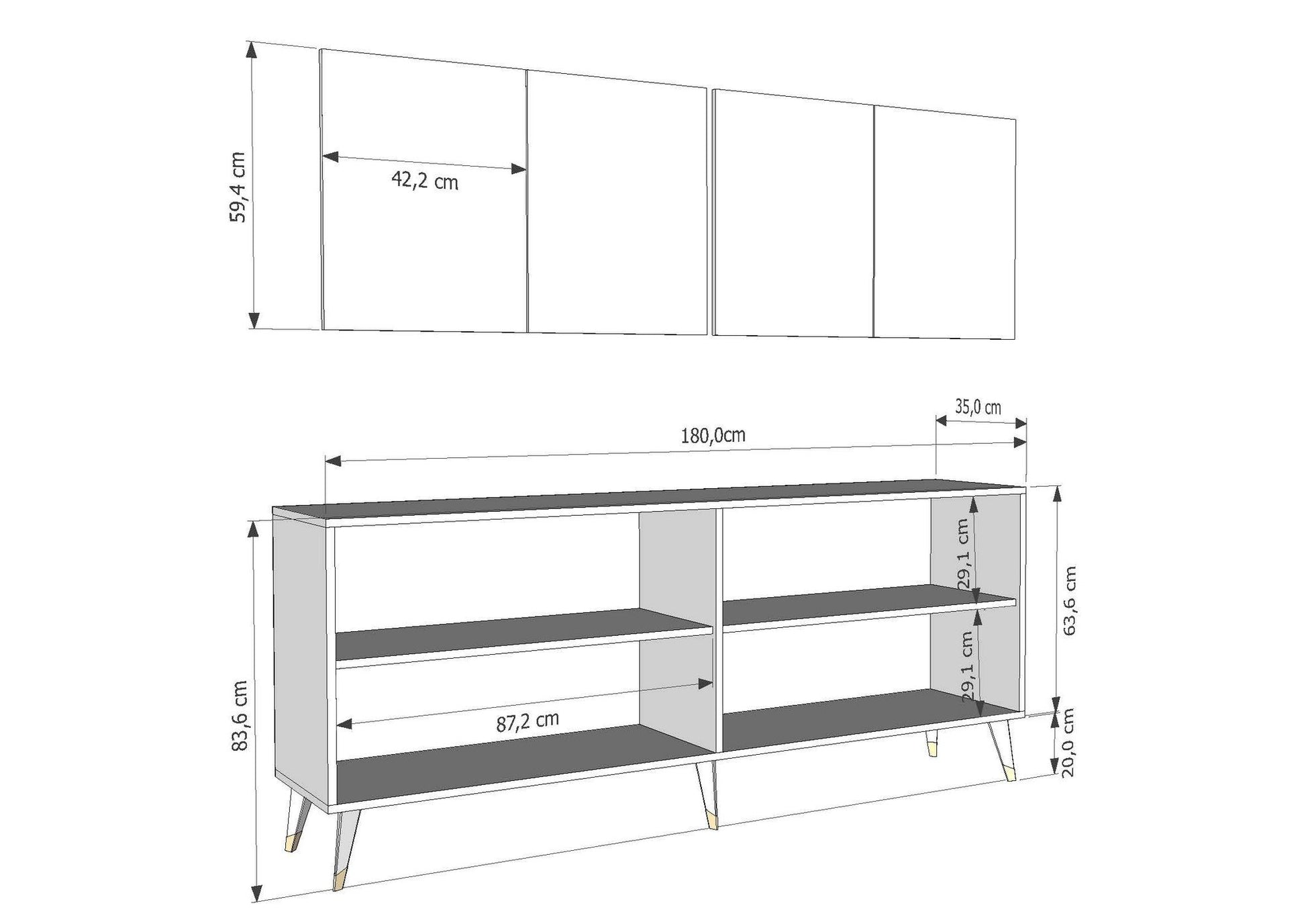 Feito de 100% de aglomerado revestido de melamina, este console não é apenas estiloso, mas também durável e de longa duração. A espessura de 18mm garante robustez, enquanto as medidas precisas de 180cm de largura, 78.6cm de altura e 35cm de profundidade fazem dele o tamanho perfeito para qualquer ambiente.