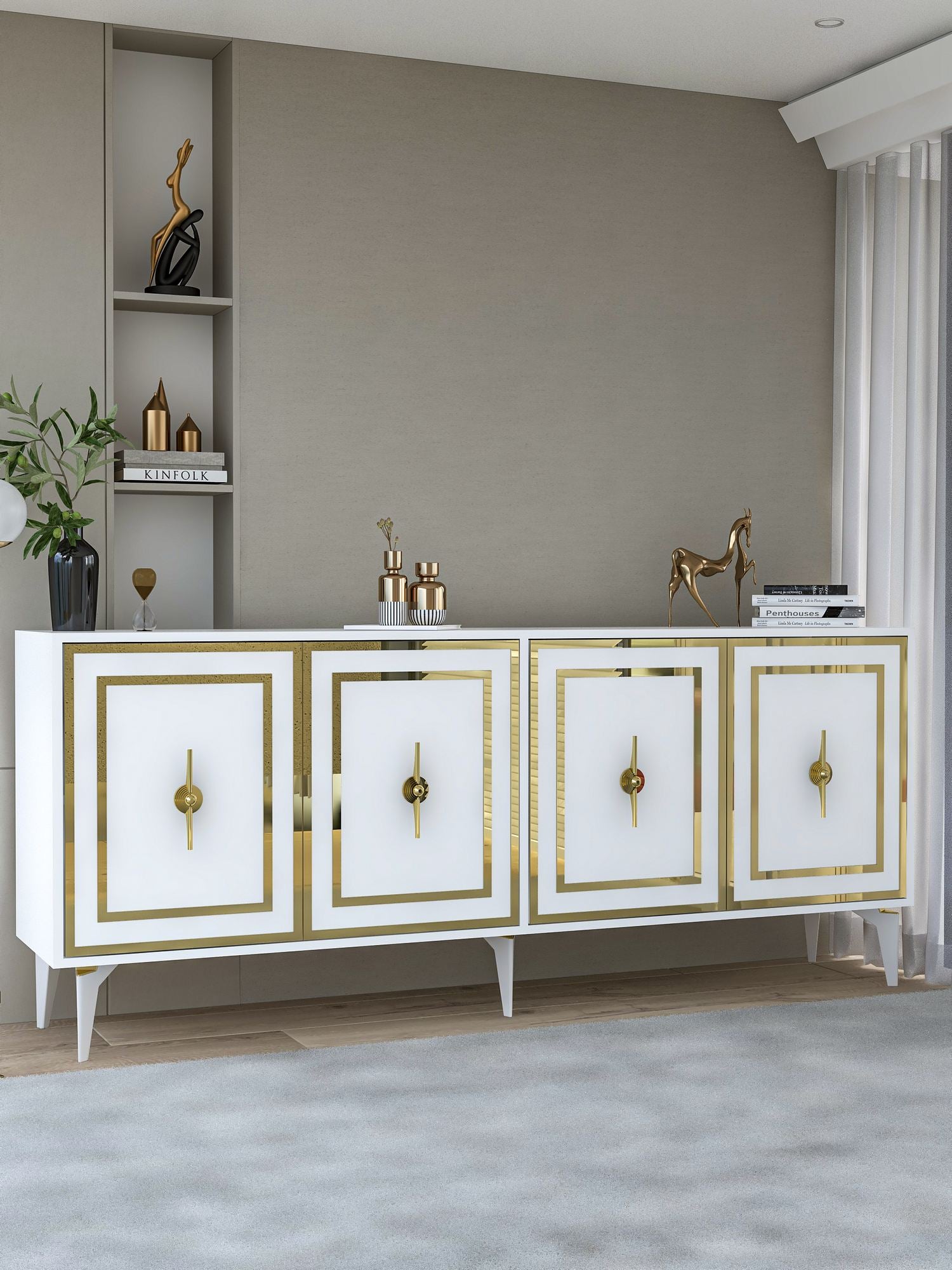 Aparador – 180cm x 78.6cm x 35cm – Branco e Dourado – Aglomerado