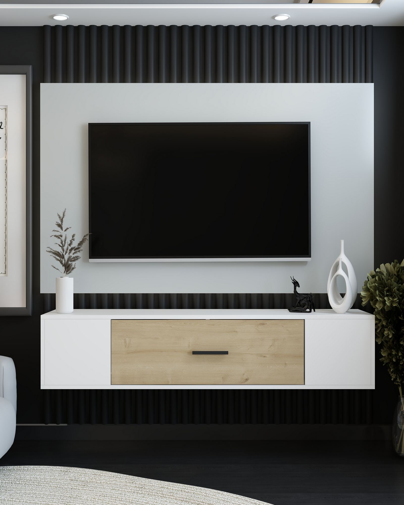 Móvel de TV – 150 cm x 33,2 cm – Branco e Carvalho Safira – MDF
