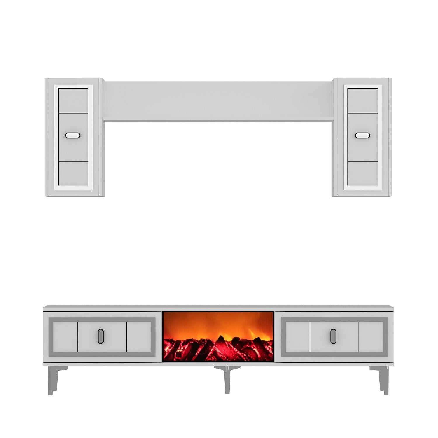 O design elegante desta unidade de TV apresenta uma combinação de cores branca e prata, conferindo um visual contemporâneo que complementará qualquer estilo de interior. O suporte para TV e a prateleira de parede oferecem amplo espaço de armazenamento para seus dispositivos de mídia, livros e itens decorativos, mantendo sua sala de estar organizada e livre de bagunça.