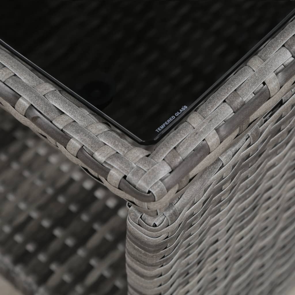 - Material: vime PE + estrutura de aço revestido a pó + tampo da mesa em vidro