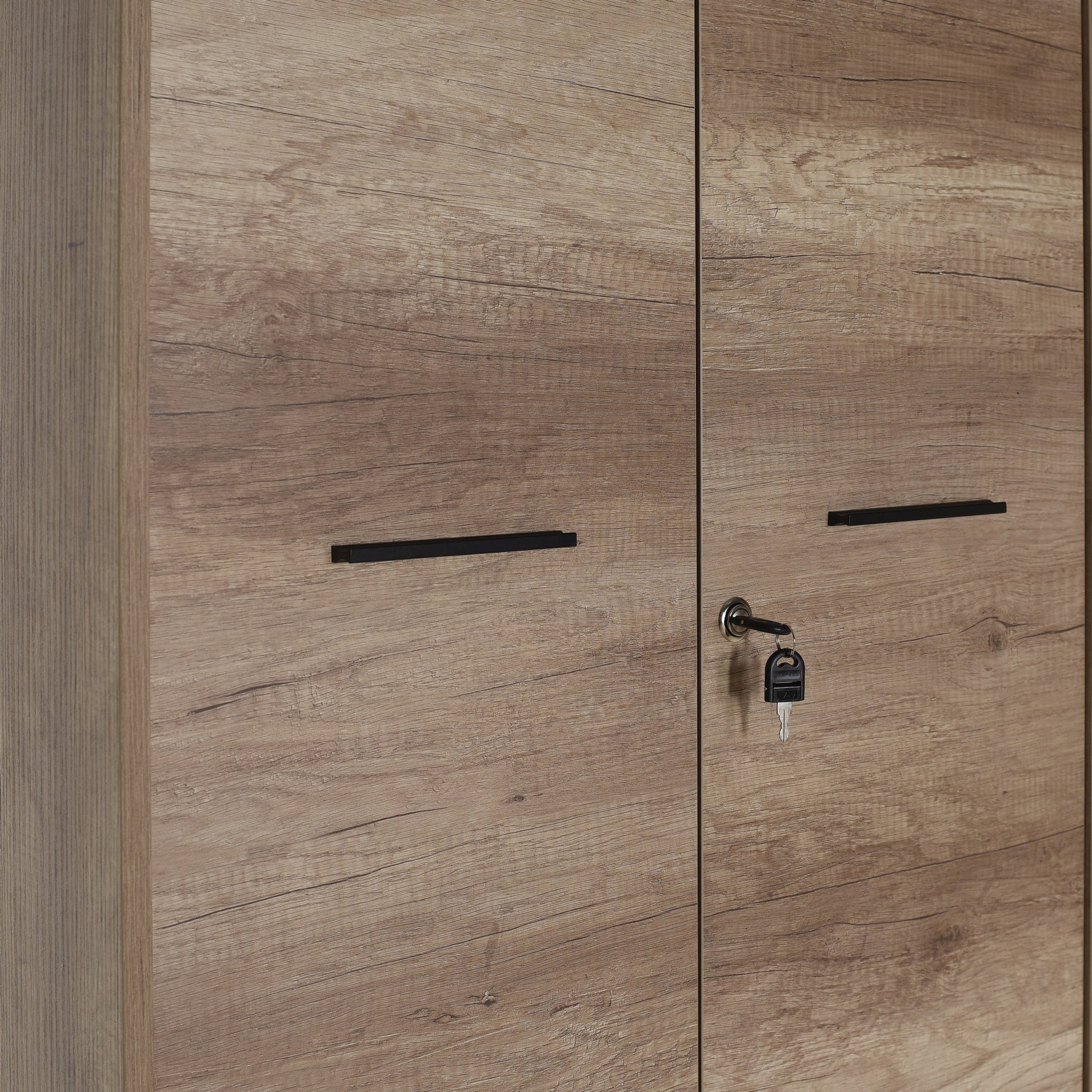 Fabricada com painéis de partículas 100% revestidos a melamina, esta estante foi construída para durar. A construção robusta garante que os seus pertences estão seguros e protegidos, enquanto a cor clara da noz acrescenta um toque quente e convidativo ao seu espaço.
