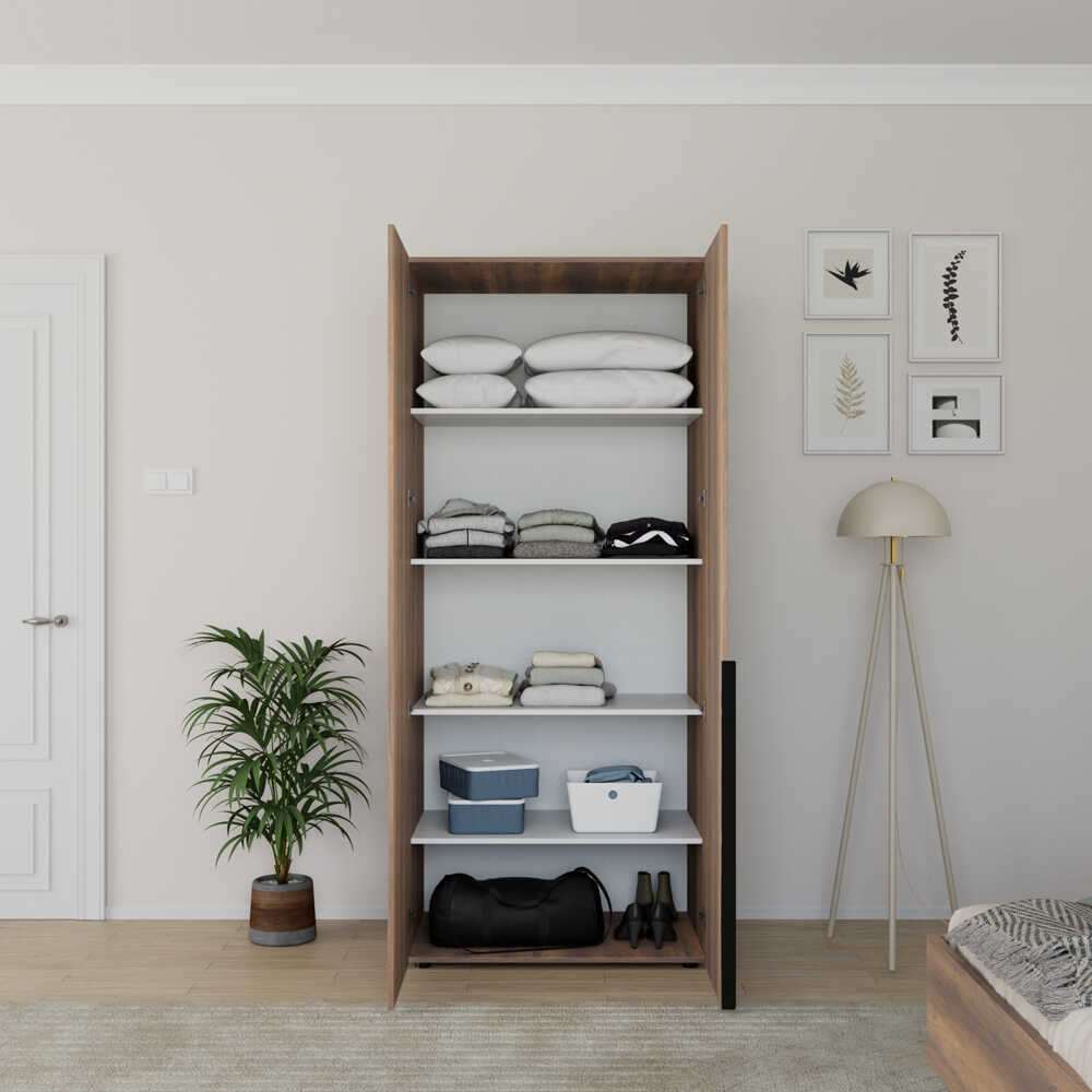 Feito de 100% de MDF revestido de melamina, este guarda-roupa é feito para durar. Durável e robusto, pode suportar o uso diário e manter seus pertences seguros e protegidos. Além disso, pode ser facilmente fixado à parede para maior estabilidade.