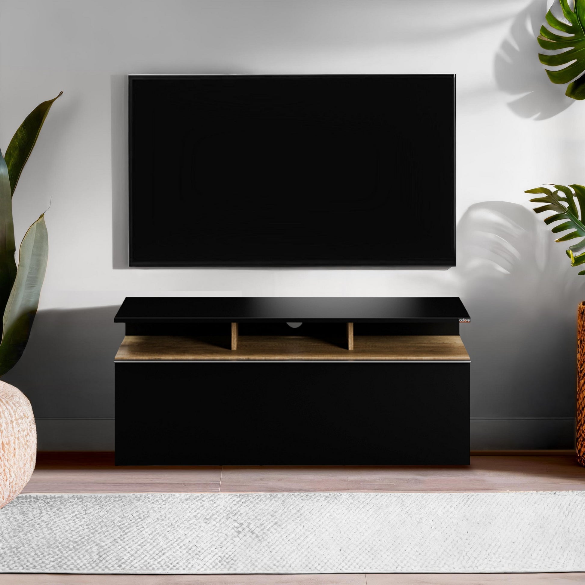 Com seu design elegante e esquema de cores versátil em preto e nogueira, este suporte de TV instantaneamente elevará a aparência de qualquer ambiente. A combinação de cores adiciona um toque de elegância e sofisticação ao seu espaço, tornando-o a adição perfeita para qualquer casa moderna.
