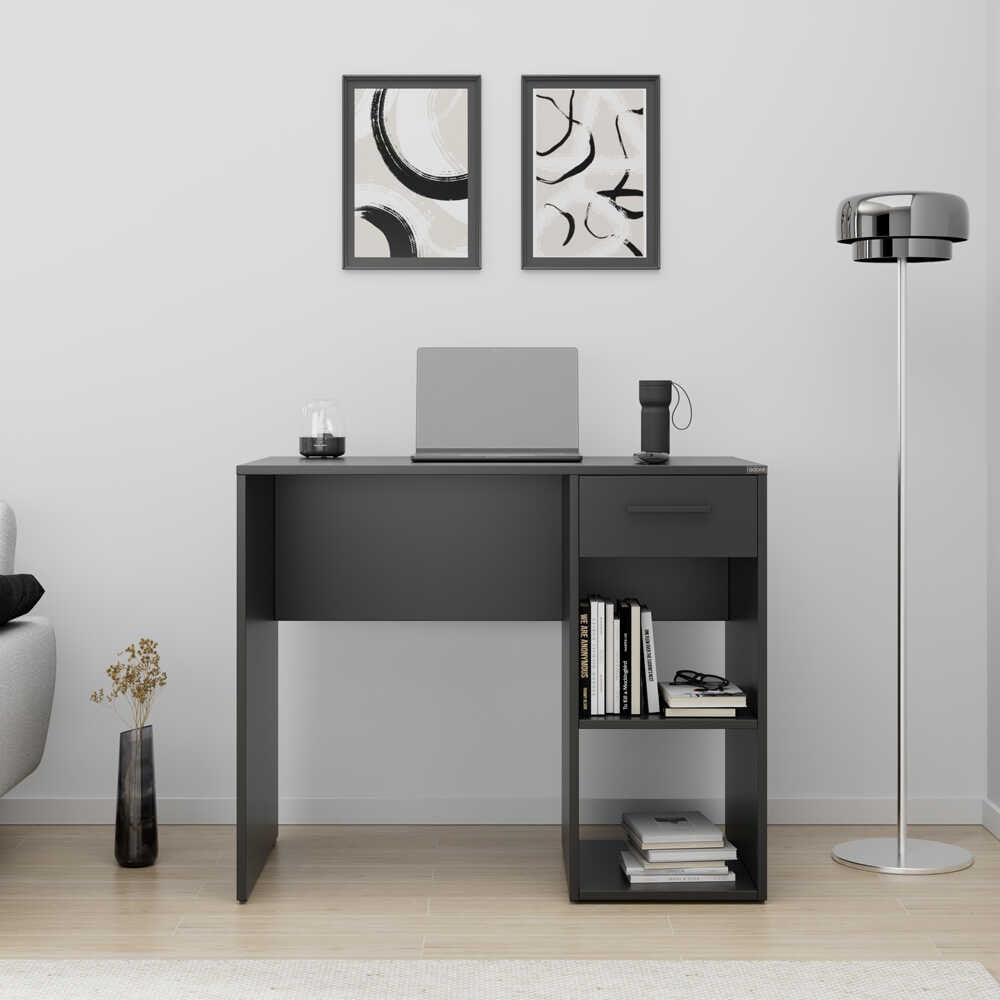 Transforme o seu espaço de estudo num paraíso de produtividade e estilo com a nossa secretária de estudo elegante e moderna. Fabricada a partir de painéis de partículas 100% revestidos a melamina, esta secretária não só é duradoura como também exala elegância. A cor antracite acrescenta um toque de sofisticação a qualquer divisão, tornando-a o complemento perfeito para a sua casa.