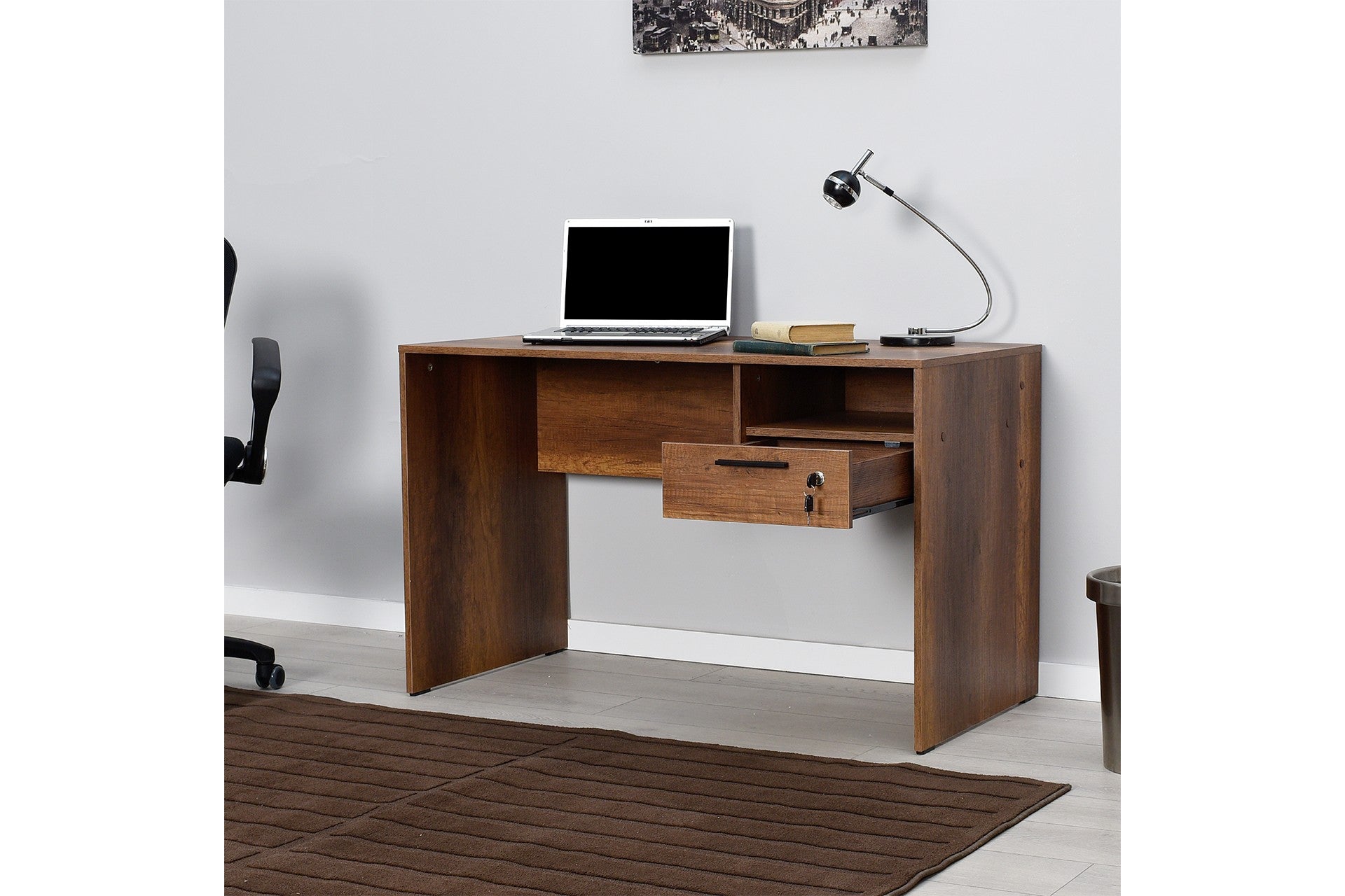 Transforme o seu espaço de estudo num refúgio de produtividade e estilo com a nossa espantosa secretária de estudo. Fabricada a partir de painéis de partículas 100% revestidos a melamina, esta secretária não só é duradoura, como também exala uma sensação de elegância que elevará qualquer divisão.