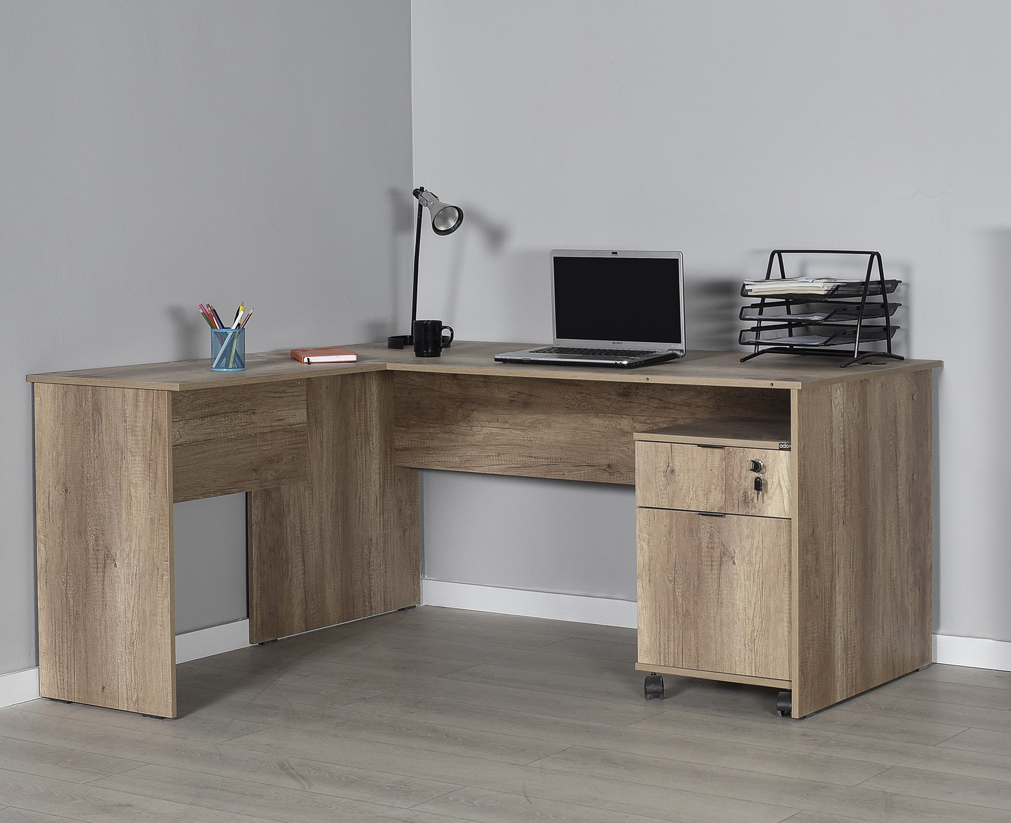 Transforme o seu espaço de estudo num santuário de produtividade com a nossa fantástica secretária de estudo. Fabricada a partir de painéis de partículas 100% revestidos a melamina, esta secretária não só é duradoura, como também transmite uma sensação de elegância e sofisticação. A cor clara da noz acrescenta um toque de calor ao seu quarto, criando um ambiente acolhedor e convidativo para estudar ou trabalhar.