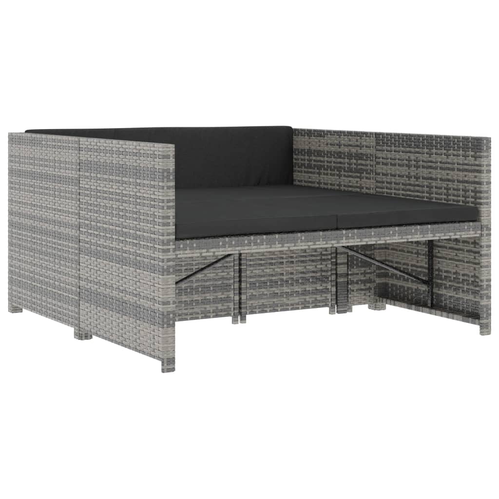 5 pcs conjunto lounge de jardim c/ almofadões vime PE cinzento