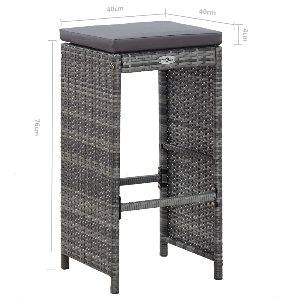 7 pcs conjunto bar para jardim c/ almofadões vime PE cinzento