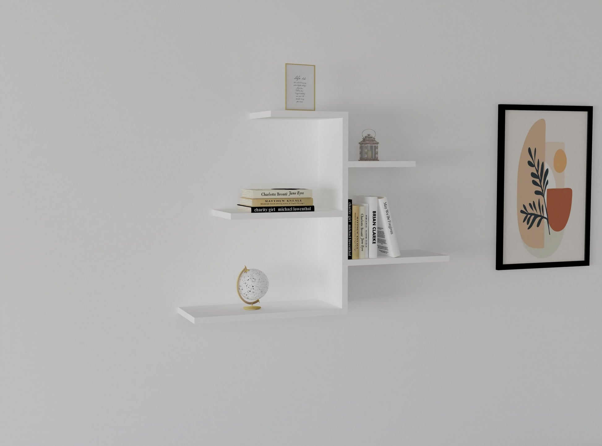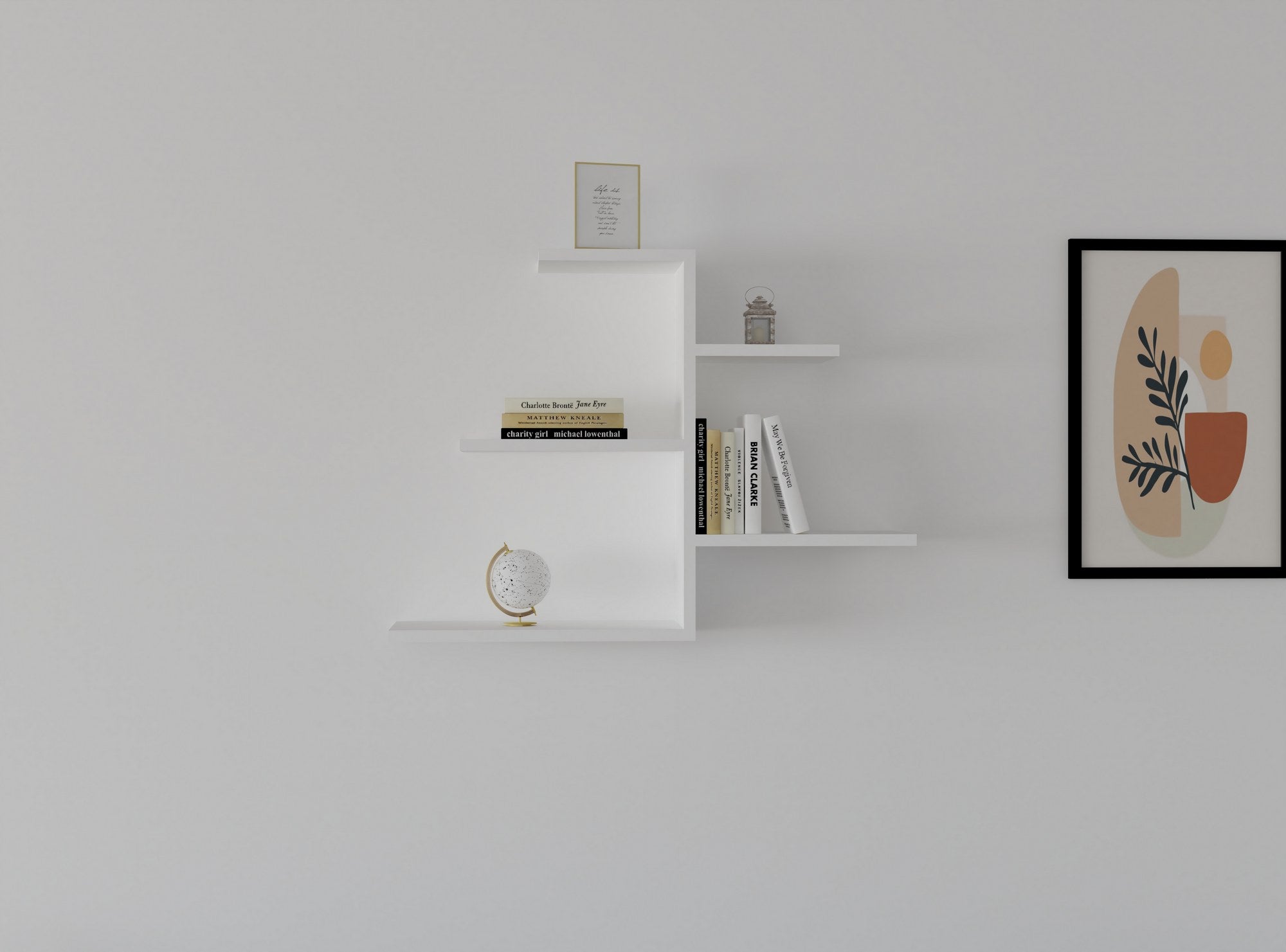Com várias prateleiras, esta prateleira de parede oferece um amplo espaço para expor os seus livros favoritos, objectos decorativos ou mesmo a sua adorada coleção de plantas. As suas linhas simples e a cor branca sólida conferem um toque de elegância a qualquer divisão, tornando-a uma peça versátil que se integra perfeitamente em qualquer design de interiores.