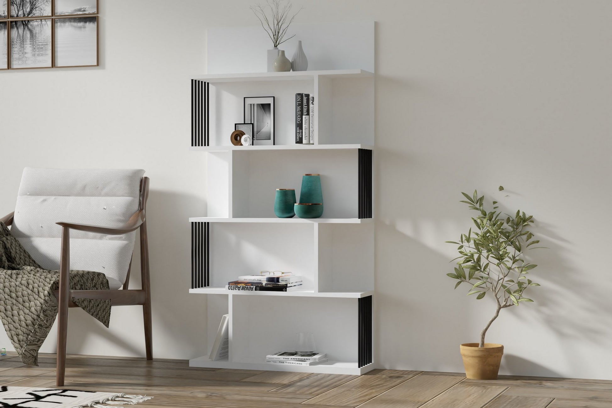 Com várias prateleiras, esta estante oferece um amplo espaço de arrumação para todos os seus livros, molduras para fotografias e objectos decorativos. Mantenha os seus pertences organizados e facilmente acessíveis, tornando mais fácil encontrar os seus romances favoritos ou exibir memórias queridas.