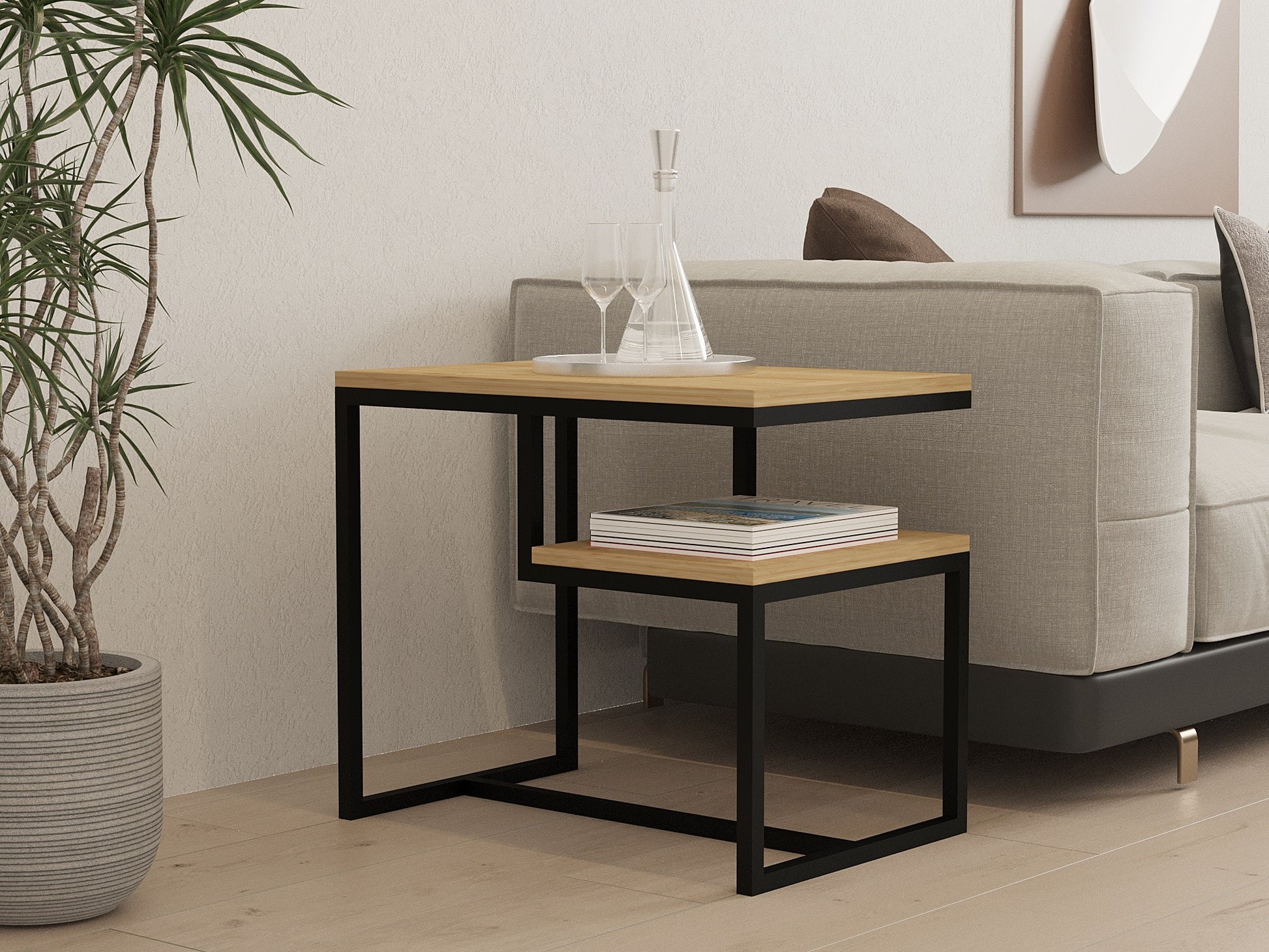 Com a sua combinação única de modernidade e design industrial, esta mesa de centro serve de tela para a sua imaginação. Deixe a sua criatividade correr solta ao adornar a sua superfície com os seus livros favoritos, objectos decorativos ou uma chávena de café fumegante. As possibilidades são infinitas e a escolha é sua.