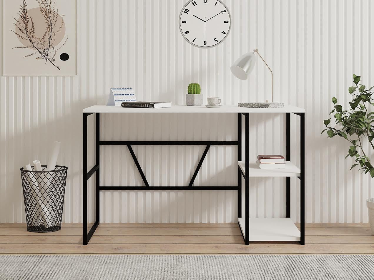 A secretária de estudo apresenta um design moderno e inovador, inspirado na elegância dos hotéis, no minimalismo escandinavo e na funcionalidade das secretárias escolares. A cor branca elegante acrescenta um toque de sofisticação e complementa qualquer decoração interior, tornando-a um complemento perfeito para a sua sala de estudo, quarto ou escritório.