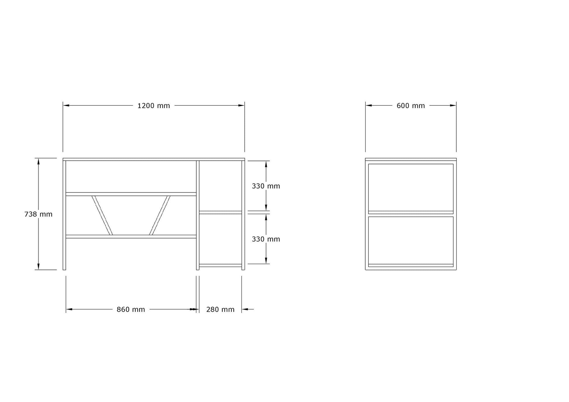 Com uma largura de 120 cm, uma altura de 74 cm e uma profundidade de 60 cm, a nossa secretária de estudo oferece um espaço amplo para acomodar todos os seus objectos de estudo essenciais. As numerosas prateleiras proporcionam uma arrumação prática para livros, cadernos, artigos de papelaria e outros materiais de estudo, mantendo tudo ao seu alcance e organizado.