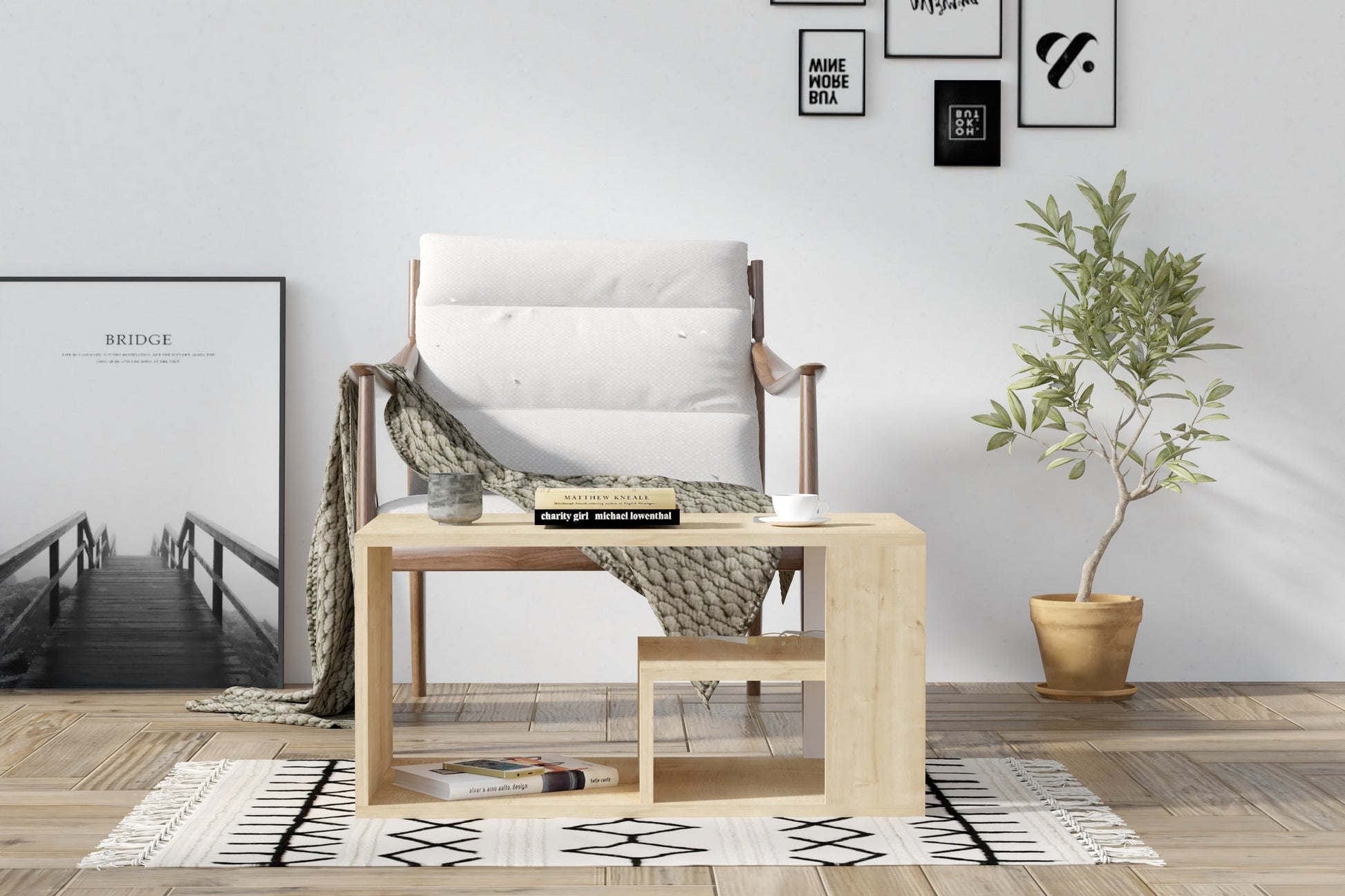 Com a sua cor sólida e design elegante, esta mesa de centro combina facilmente com qualquer decoração interior, acrescentando um toque de modernidade e novidade à sua casa. O conceito de inspiração escandinava garante um aspeto minimalista mas chique, perfeito para quem aprecia a simplicidade e a sofisticação.