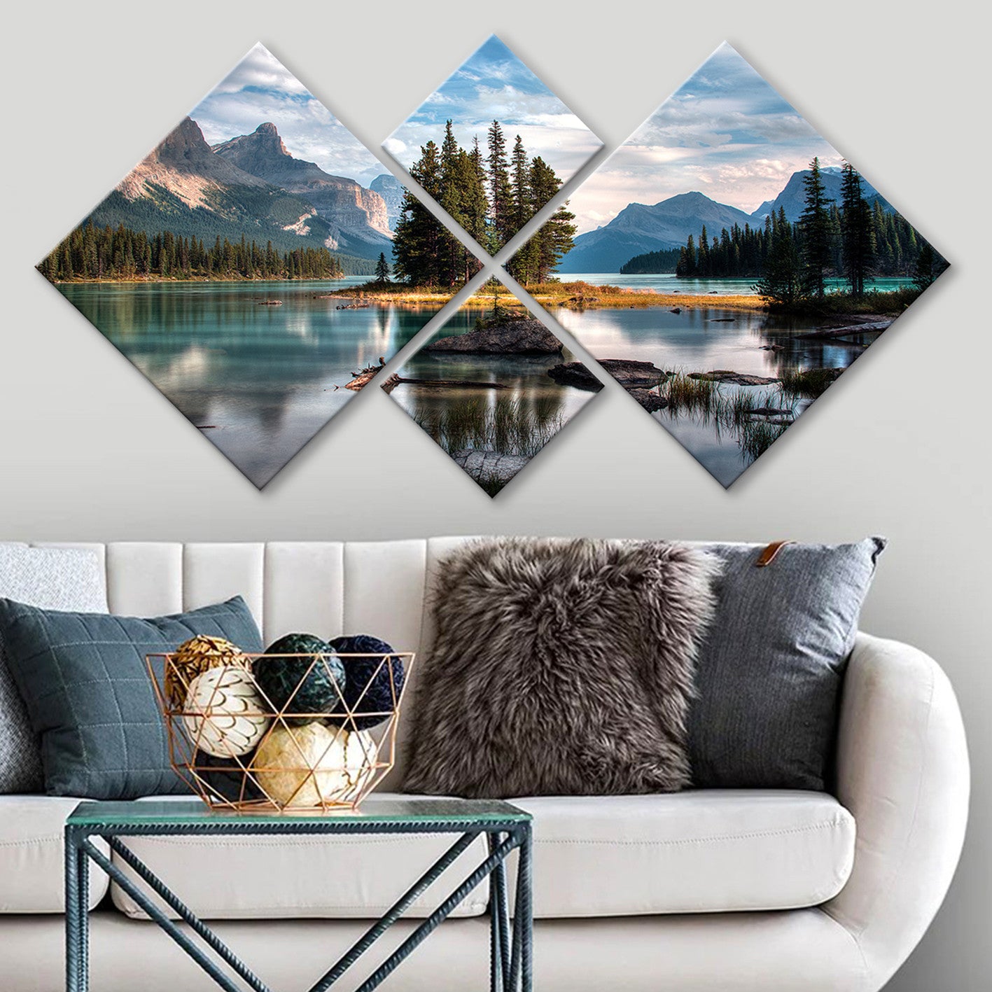 Com duas peças de 40 x 40 cm e duas peças de 20 x 20 cm, este conjunto oferece um equilíbrio harmonioso de tamanhos que encherá a sua parede de beleza sem esforço. O tamanho total de 60 x 115 cm é perfeito para criar um ponto focal que exige atenção.